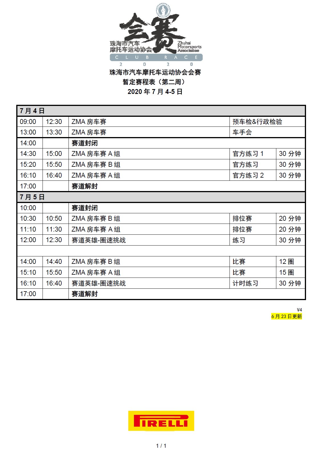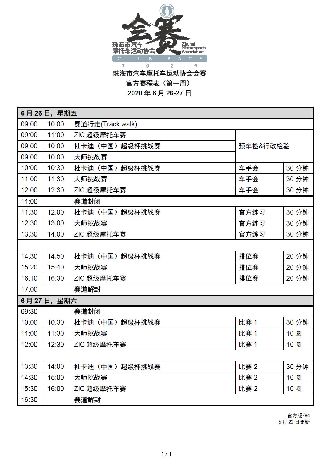 珠海市汽車摩托車運(yùn)動(dòng)協(xié)會(huì)會(huì)賽-第2場(chǎng) 第一周官方時(shí)間表