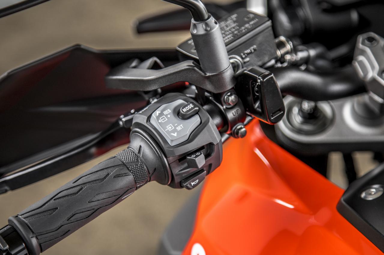 XT版還配備了巡航控制系統(tǒng),該系統(tǒng)可以設(shè)置為50km/h或更高的速度,在手柄右側(cè)提供了一個開關(guān),毫無疑問,它將在高速行駛或長距離騎行時,大幅度減輕騎手的負(fù)擔(dān)。