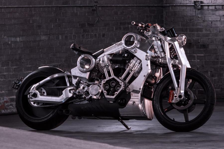 Confederate Motors的第二代Fighter車型P51 Combat Fighter,僅限量生產(chǎn)61臺(tái),包括31臺(tái)銀色款和30臺(tái)黑色款,著名設(shè)計(jì)師Pierre Terblanche的作品。搭載CX4風(fēng)冷V型雙缸發(fā)動(dòng)機(jī),最大馬力超過200匹,峰值扭矩231牛米, 航空鋁打造的車架看起來極具機(jī)械美感,即便如此該車重量也達(dá)到了226.8kg。