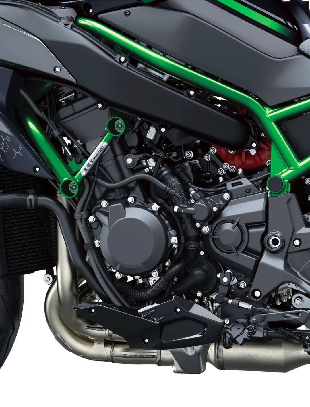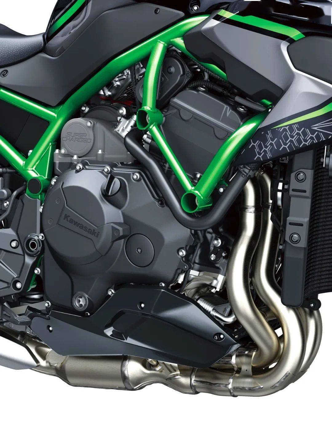 Z H2 在去年的十月下旬首次正式公開展示,搭載一副與 Ninja H2 SX 共享的水冷四沖程直列四汽缸、DOHC 每汽缸四汽閥、機械增壓的發(fā)動機,排汽量 998 cc,最大動力輸出 147 kw(約 200 匹)。作為一款運動型的街車,Z H2 通過調節(jié)進氣和排氣特性以及電噴系統(tǒng)的數(shù)據(jù)包設置,為中低轉速域提供強大的扭矩。此外,該車配備了電子控制的節(jié)氣門,以實現(xiàn)平穩(wěn)、自然的節(jié)氣門響應。