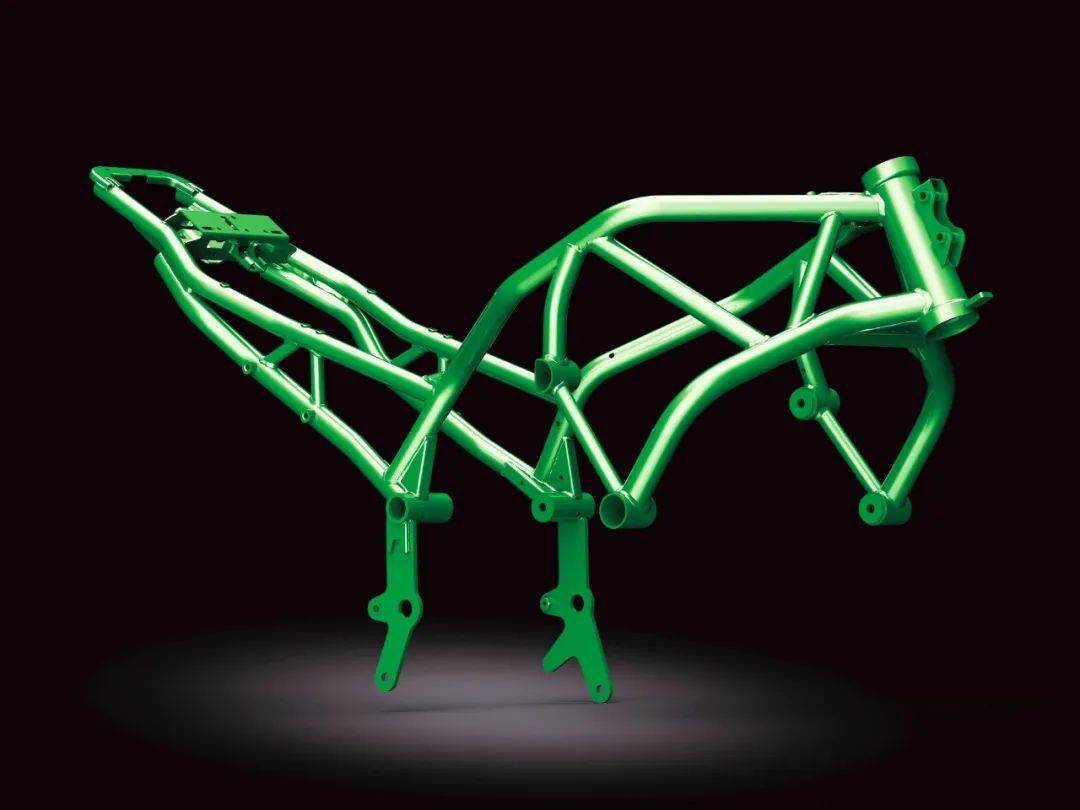 車體方面,采用高強度鋼管制成的車架,這樣的設計既具有承受大功率發(fā)動機負荷的剛度、又具有提供線性處理的靈活性。懸掛系統(tǒng)使用 Showa SFF-BP 倒立式前叉和新型 Unitrack 后搖臂搭配 Showa 單筒后減震。