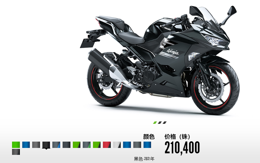 2021款的Ninja 400有黑色,綠色,藍(lán)色和灰色可供選擇,加上之前的各種顏色版本,泰國(guó)Ninja400的可選顏色高達(dá)15種。新的藍(lán)色車型將僅在SE(ABS)車型上提供,Ninja 400 2021款在泰國(guó)的價(jià)格,標(biāo)準(zhǔn)版售價(jià)為210,400泰銖(4.64萬(wàn)人民幣),SE版本的售價(jià)216,200泰銖(4.76萬(wàn)人民幣)。
