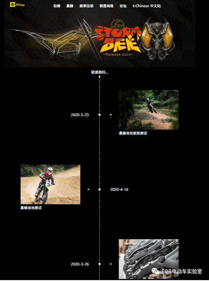 看到Segway X260,想必很多人想起了另一臺備受粉絲期待的越野電摩——虬龍暴蜂。根據(jù)虬龍官網(wǎng)消息,暴蜂已于今年3月開始小批量組裝,并于4月和5月分別完成了場地測試和場地極限測試,相信不出意外的話,暴蜂將會(huì)很快和廣大消費(fèi)者見面。