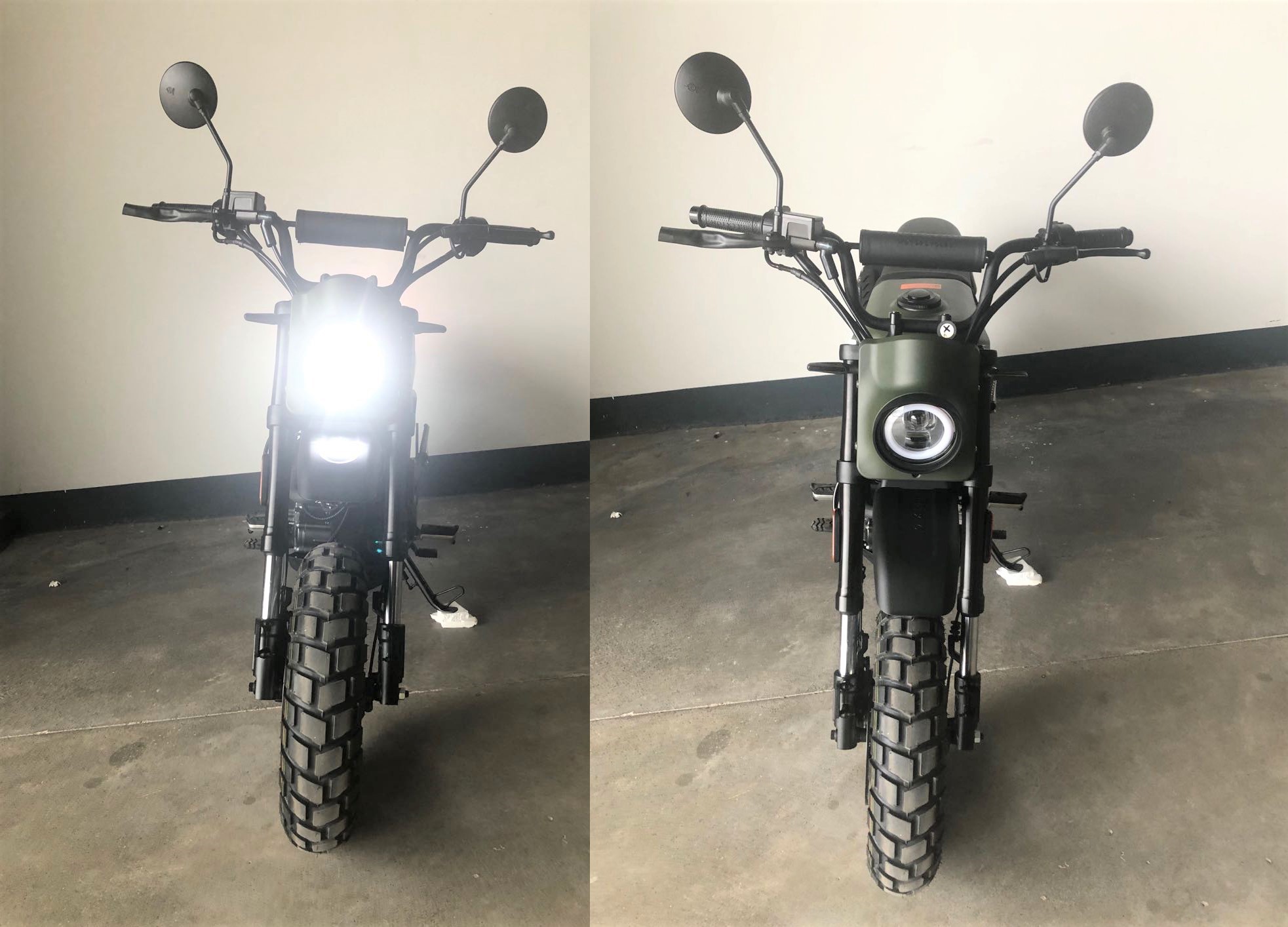 圓形大燈是復古風格必備的元素,近距離觀察頭燈你會發(fā)現(xiàn),大燈采用當下比較常見的上下分開式布局,一顆晶瑩剔透的透鏡非常明亮,乳白色的圓形LED燈帶很有質感,靈動的“眼眸”很好的詮釋了它的名字“摩童”。