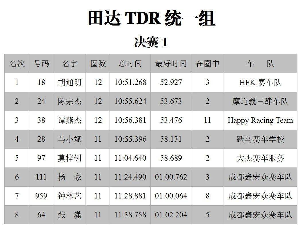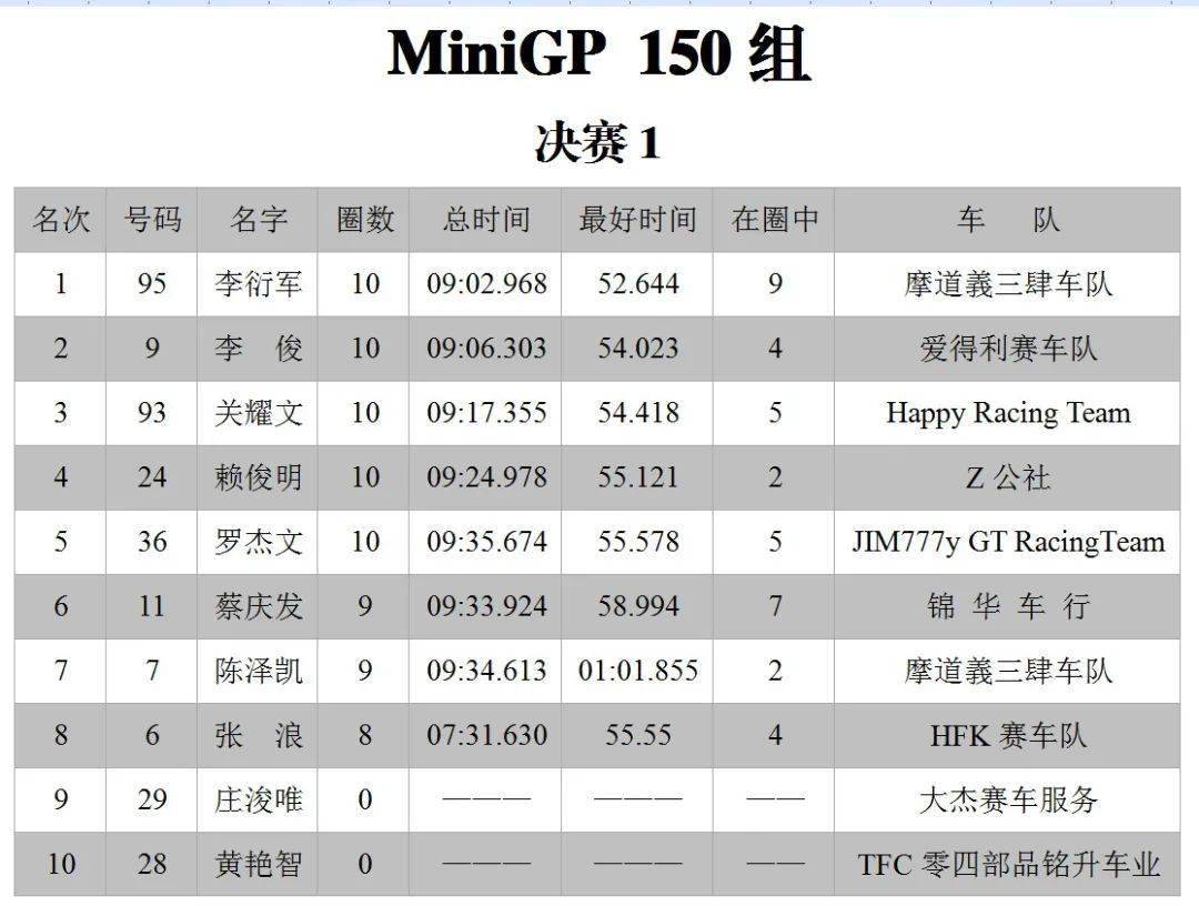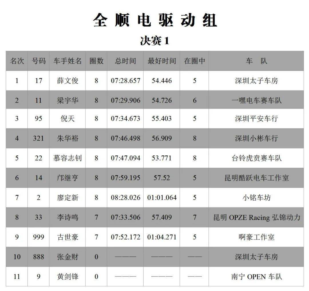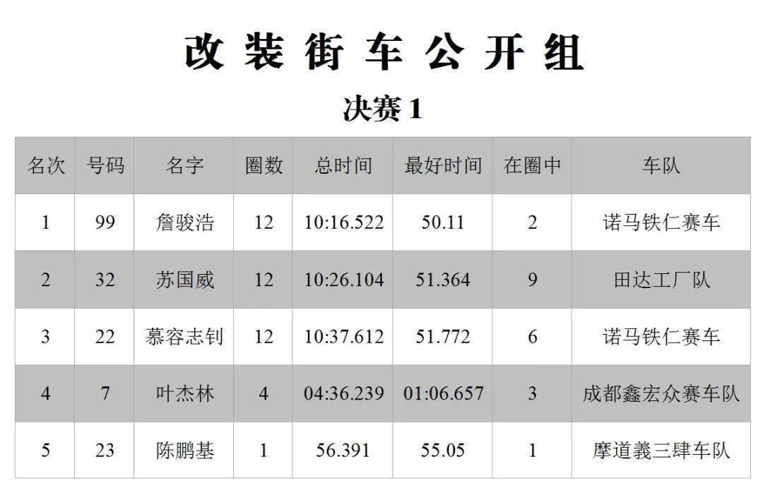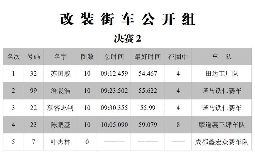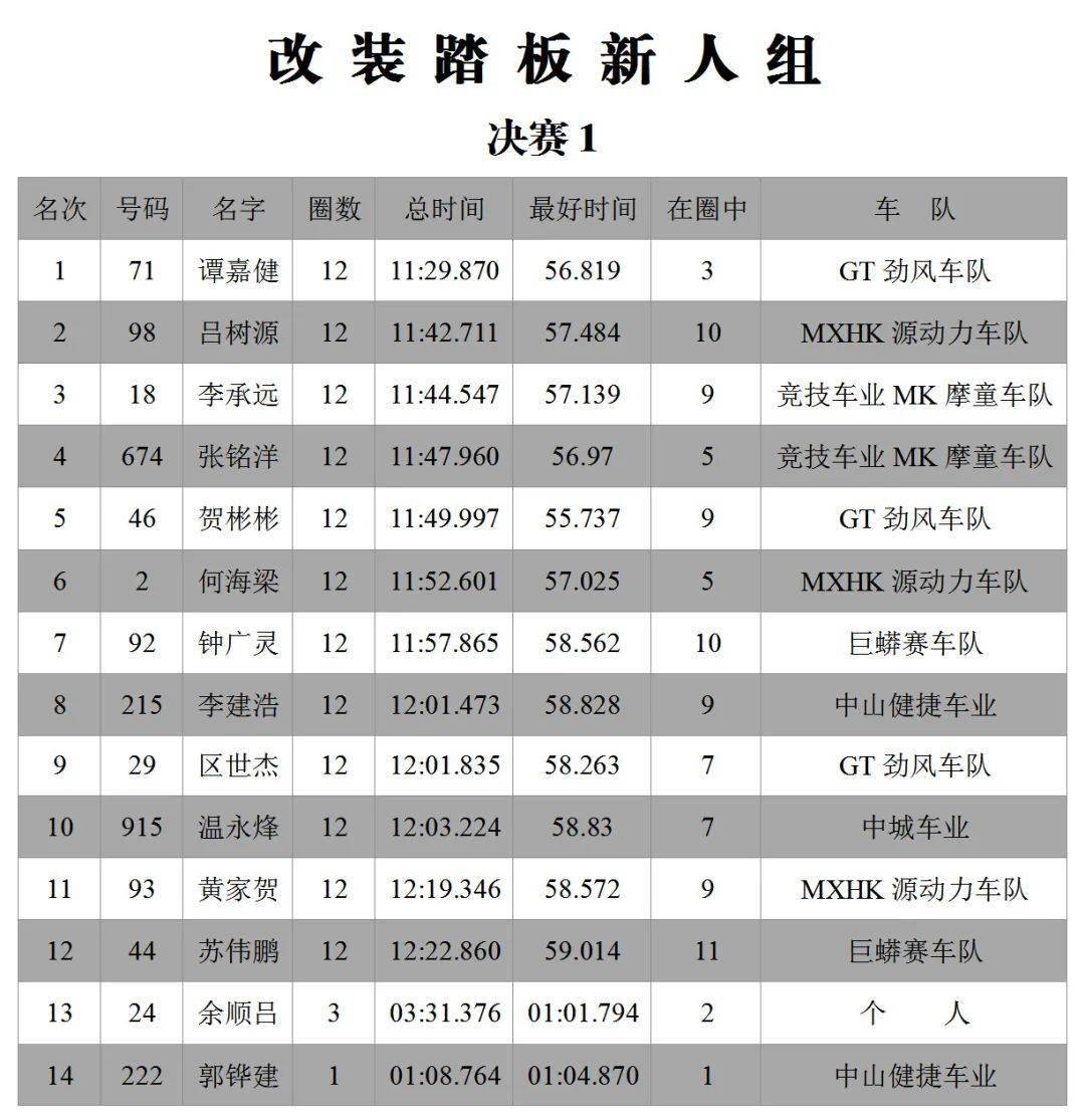 下面的圖片,三水森林公園賽車會(huì)摩托車大賽 偉業(yè)達(dá)杯、2020 年度第二回合,八個(gè)組別的成績(jī)。