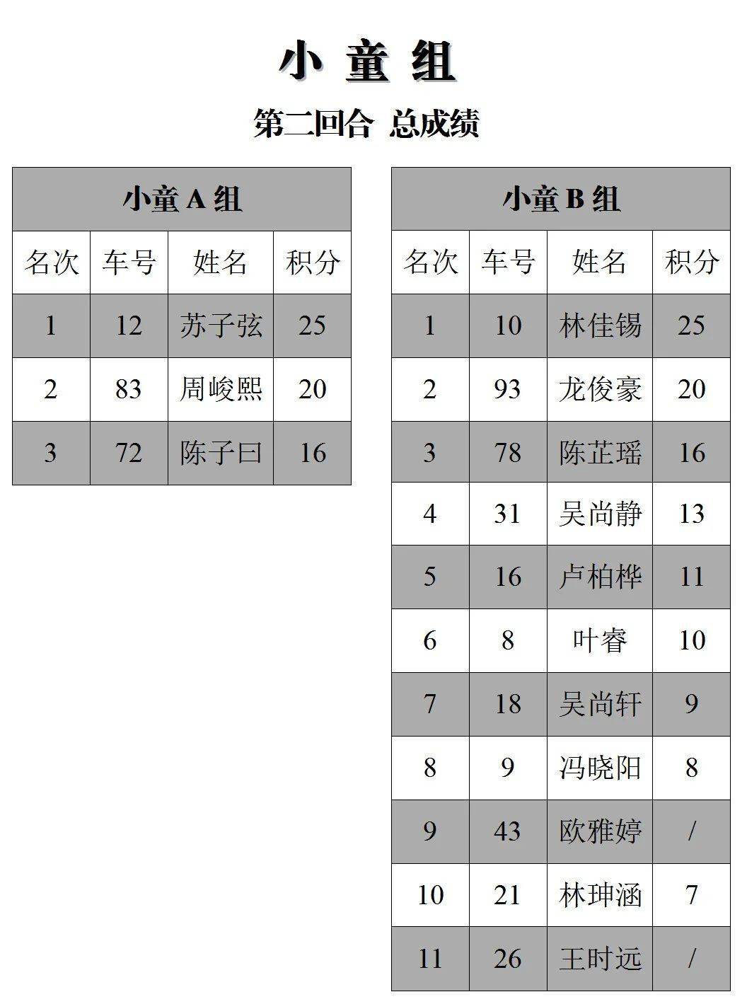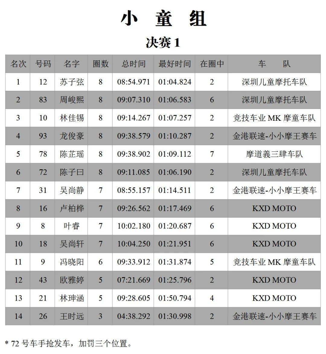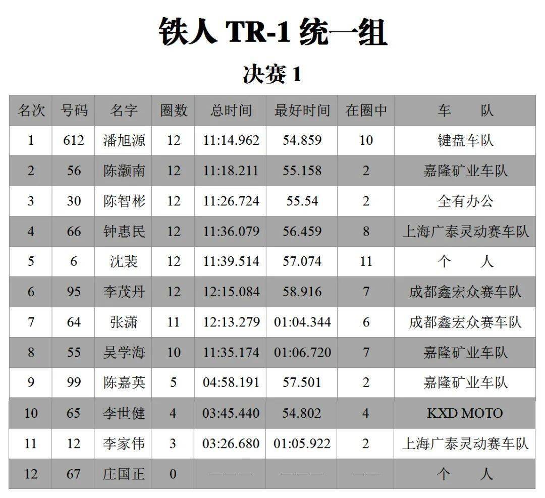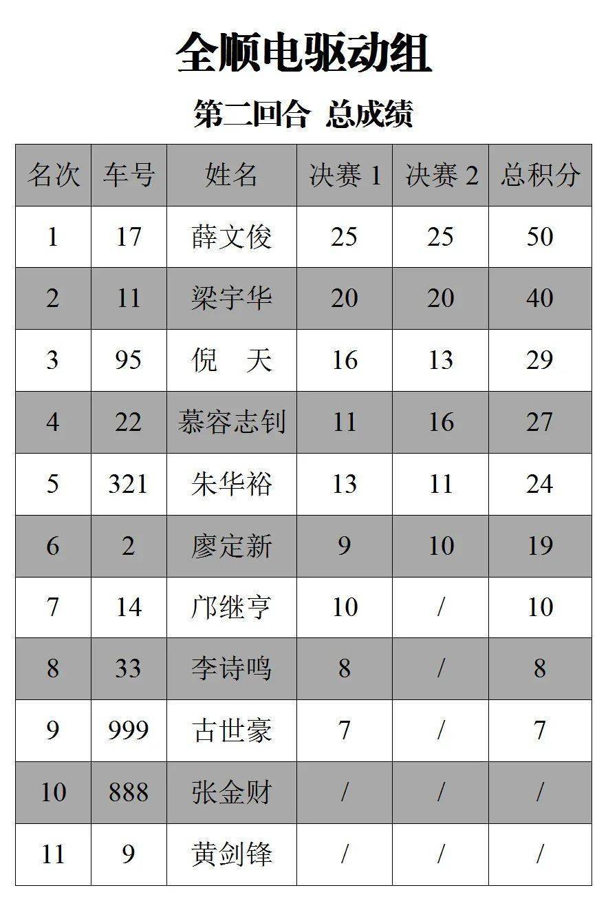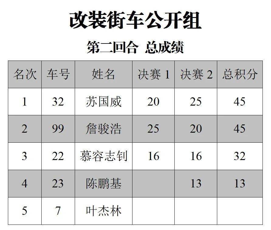 下面的圖片,三水森林公園賽車會(huì)摩托車大賽 偉業(yè)達(dá)杯、2020 年度第二回合,八個(gè)組別的成績(jī)。