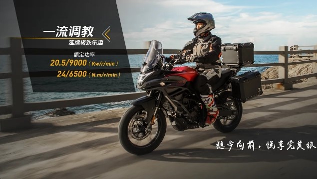 發(fā)動機雖然是無極300R/300AC的同款發(fā)動機,但是發(fā)動機輸出有所調(diào)整,300R的最大輸出為19.3Kw/24.5Nm,官方給出的300DS輸出數(shù)據(jù),功率有所上調(diào),扭矩有所下降。6500rpm就能輸出峰值扭矩,比街車提前了1000rpm,峰值馬力要到9000rpm,比街車延遲了500rpm。