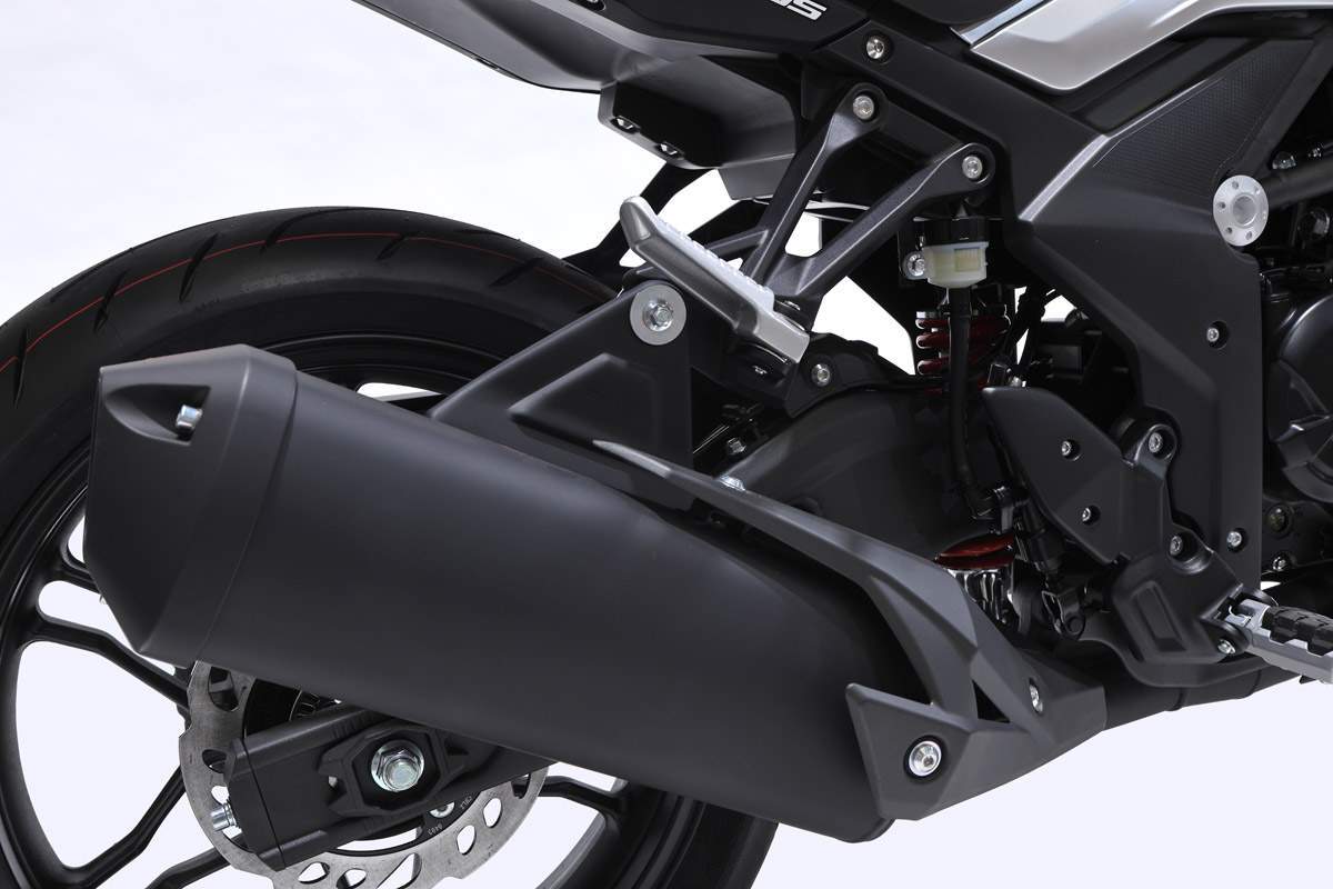 排量292cc的單缸4氣門水冷發(fā)動機,最大功率20.5Kw/9000rpm,最大扭矩24Nm/6500rpm。在底盤方面,我們發(fā)現(xiàn)了一個多管鋼制框架 ,其不對稱搖臂由,后部中置單減震器多連桿懸掛支撐。