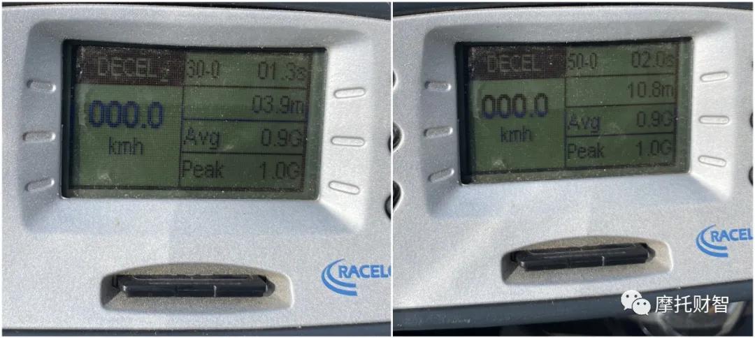 這個制動成績在日常使用中完全ok,ABS效果也不錯,介入的時機正好,以至于后輪偶爾會有輕微的響胎,并且點剎頻率也良好。不過卡鉗的咬合力,以及剎車皮的摩擦力比較一般,特別是前段,剎車剛剛捏下一半的時候,制動力不是很明顯,要非常用力的捏下剎車,才會有明顯的強有力的剎車。