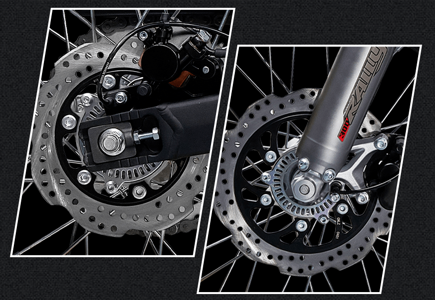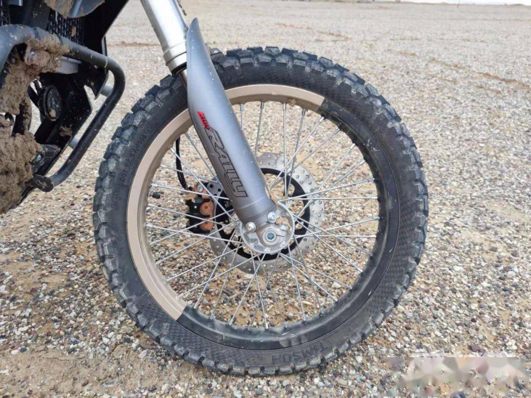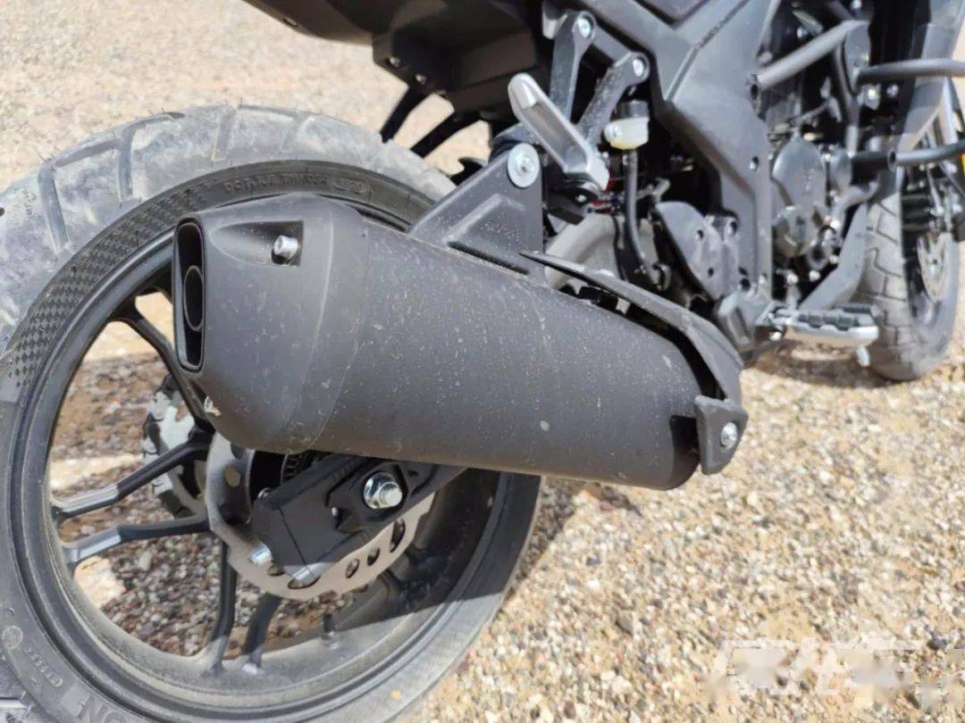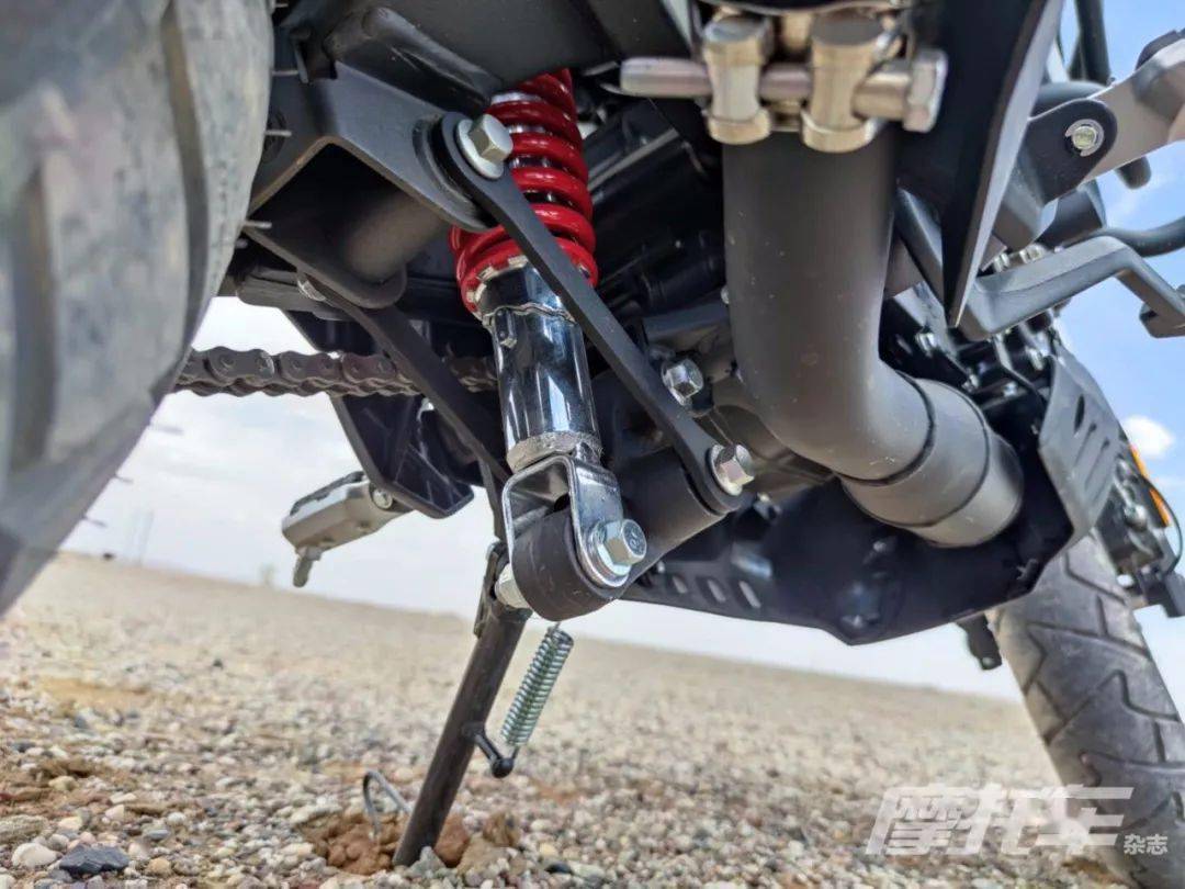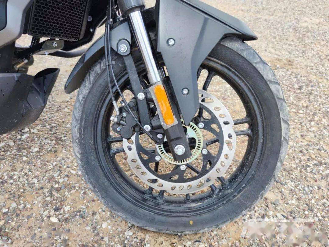 原廠狀態(tài)的300GY RALLY座高為850mm,離地間隙235mm,輪胎方面為前90/90-19,后110/90-17的組合,同樣為高階騎手保留了改裝空間。前制動(dòng)為單向雙活塞卡鉗配265mm制動(dòng)盤,后制動(dòng)為單活塞卡鉗配220mm制動(dòng)盤,配備賽福ABS。素車狀態(tài)下,300GY RALLY有著接近50:50的前后比重,不過(guò)對(duì)于許多可能用于摩旅的騎手來(lái)說(shuō),后部過(guò)多的載重會(huì)使重心后移,在非鋪裝路況下會(huì)使前輪導(dǎo)向性降低,這點(diǎn)后續(xù)的試駕感受篇中再展開說(shuō)。