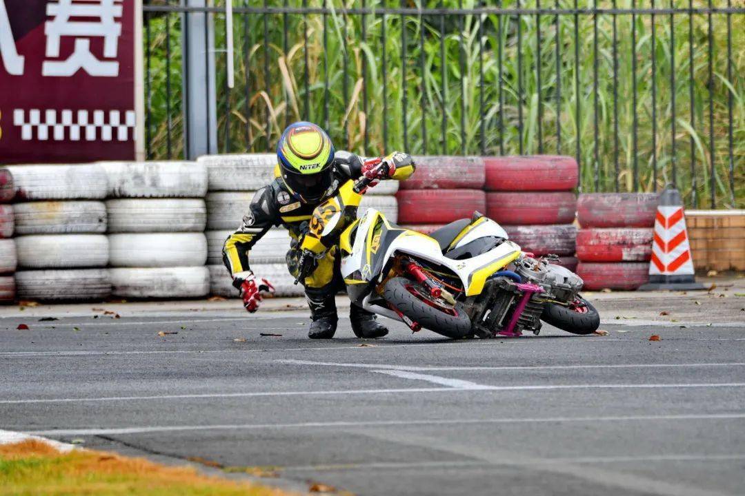 核心提示:下面的圖片,艾瑞森輪胎改裝踏板 150 cc 公開組、決賽 1(第一節(jié)比賽),駕駛 95 號車的倪天在第 2 圈的最后一個(gè)彎道摔倒。他很