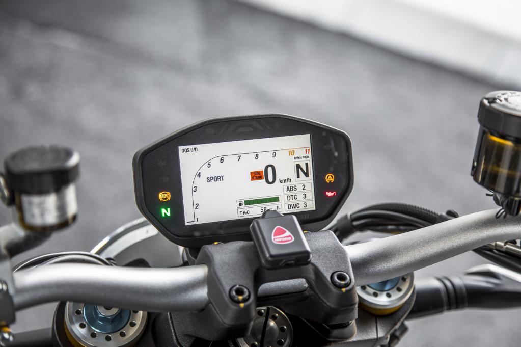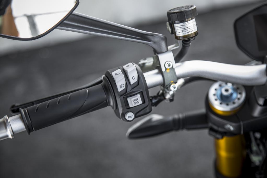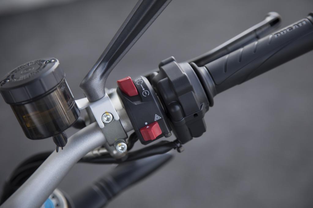 整個操作區(qū)域沒有多余的設(shè)計,功能按鍵區(qū)分明顯,干凈利落的風(fēng)格非常純粹,同時這也是Monster系列所追求的。直立的車把不高不低,身體略微前傾有些戰(zhàn)斗。
