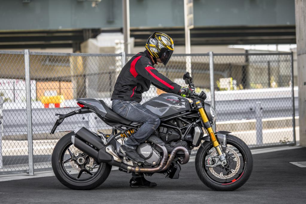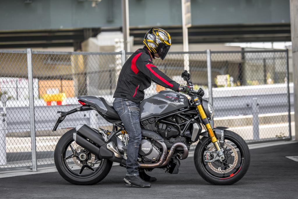 座高為795 / 820mm(可選),圖中車型為820mm的座高,騎士身高175cm體重64kg,雙腳前腳掌著地,如果是低座版將會更加輕松,Monster 1200S的干重為185kg,車輛路緣重量為215kg,是典型的大排量車型,但是操作起來比較輕巧。