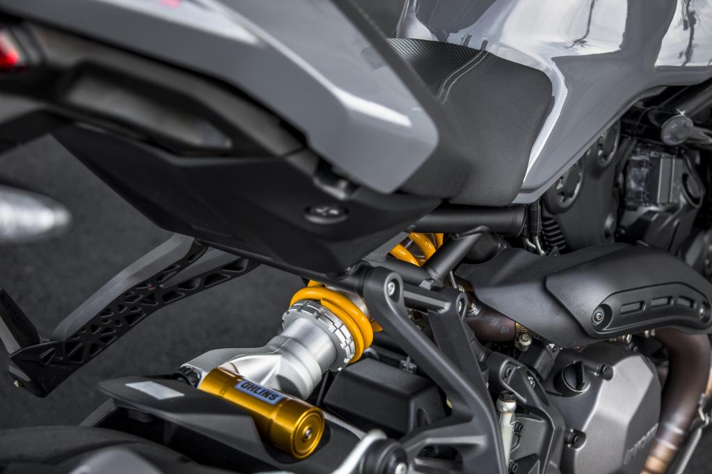 OHLINS后避震器,即使在標準配置中也具有預(yù)緊和延伸側(cè)調(diào)節(jié)機構(gòu),但在S版本上已升級為完全可調(diào)的形式。
