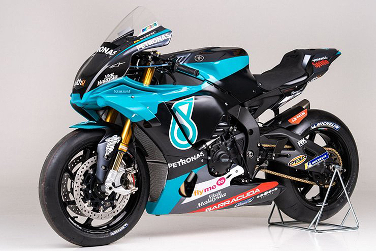 全部由負責MotoGP自行車的同一家公司涂上馬來西亞國家石油公司Yamaha雪邦賽車隊(PYSRT)的顏色,以確保其準確性盡可能高。變化不僅僅是外觀層面,SRT還配備了Ohlins FRGT前叉和Ohlins TTX后減震器,以及工廠賽車套件排氣裝置。GYTR快速更換軸安裝在后搖臂上,用于快速更換車輪,輔以賽車腳踏板以及Brembo的可調(diào)式制動器和離合器桿。