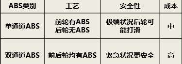 剎車(chē):雙通道ABSVS單通道ABS