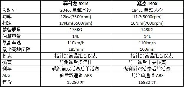 15280賽科龍RX1S和16980猛鷙190X,配置碾壓香不香?