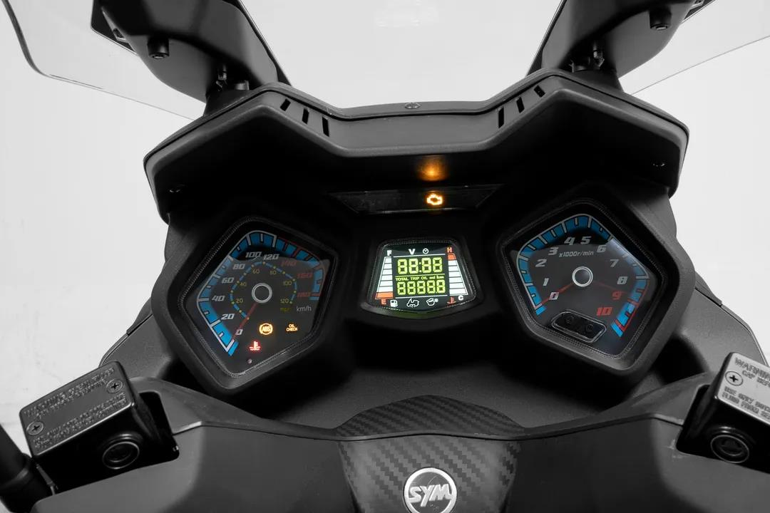 三塊儀表的設(shè)計符合三陽目前所秉承的設(shè)計風(fēng)格,比如MAXSYM TL就是采用三塊儀表的布局。新款九妹的時速表和轉(zhuǎn)速表依然還是機(jī)械表盤,中間部分為VA彩屏液晶儀表,顯示油量、水溫、電瓶狀態(tài)、機(jī)油狀態(tài)等等一些車輛信息。