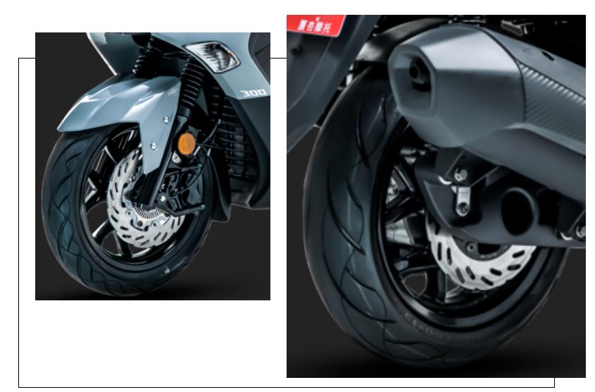 避震的規(guī)格中規(guī)中矩,前叉為傳統(tǒng)的正立式,后避震為雙彈簧式;前制動采用對向四活塞輻射卡鉗,搭配260mm浮動碟盤;后制動采用單向雙活塞卡鉗,搭配240mm碟盤、前后均有博世ABS防抱死系統(tǒng)。