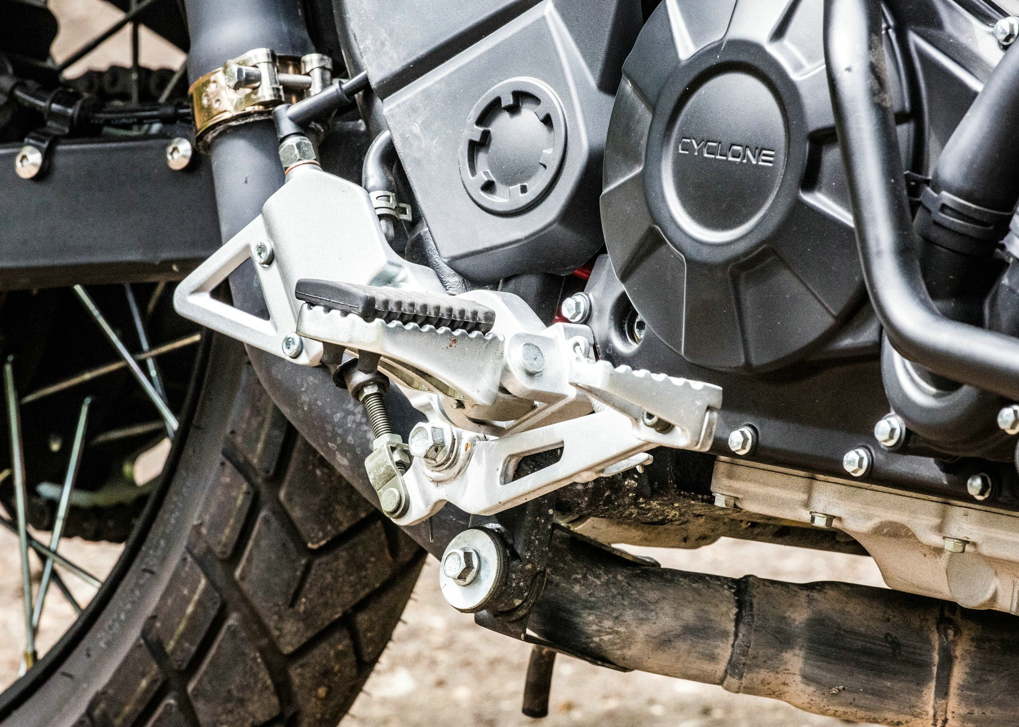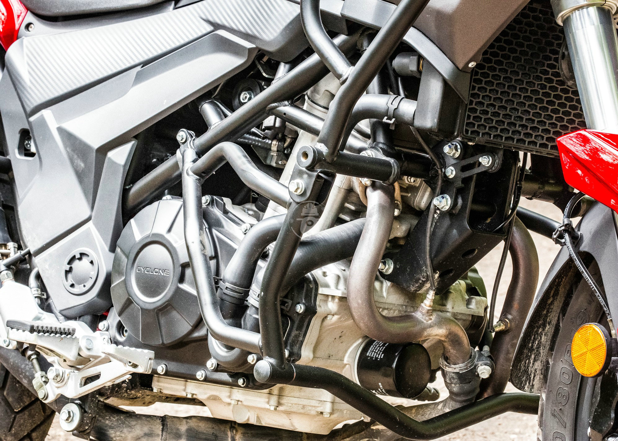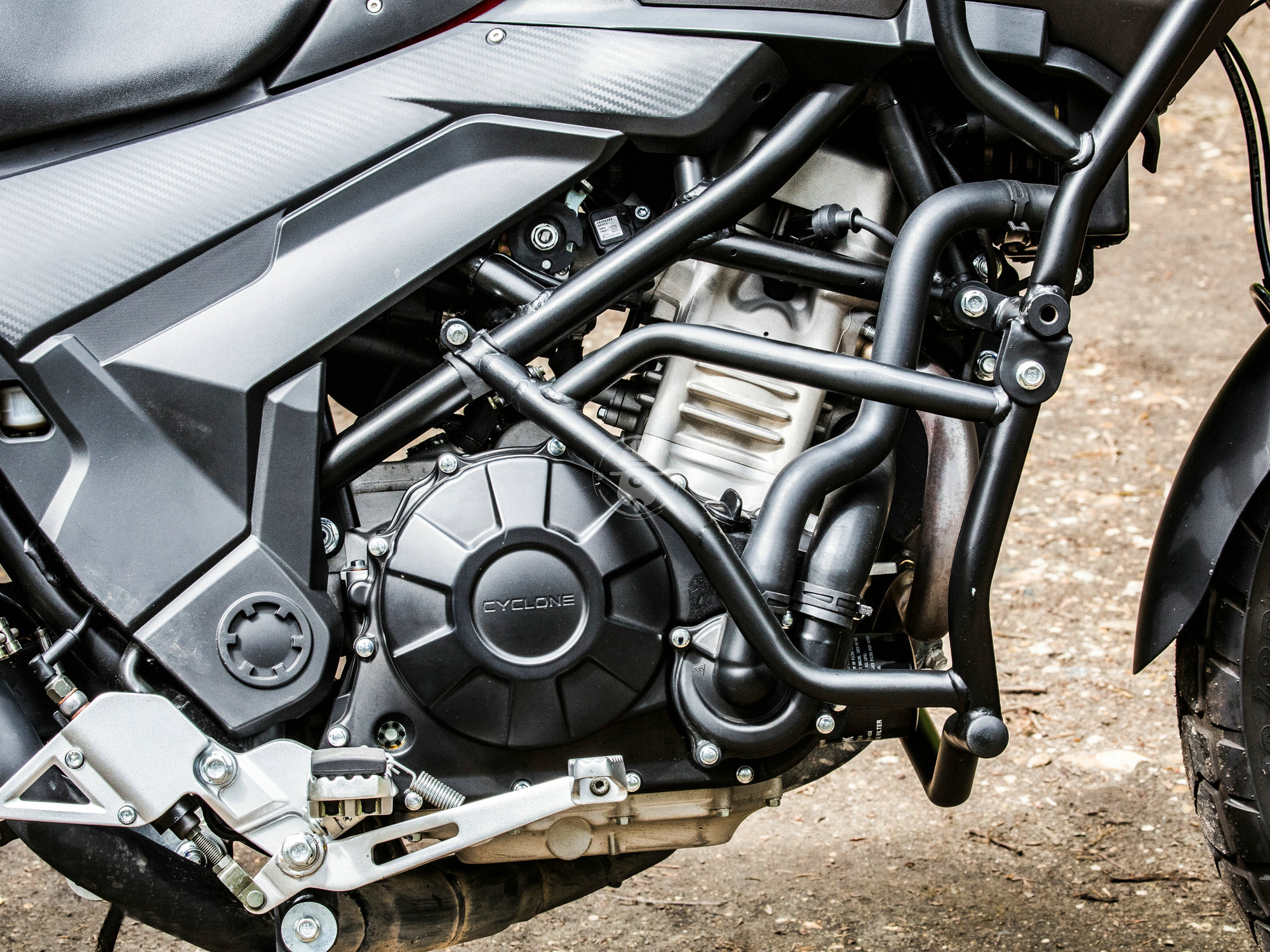 雖然說原廠配備了護(hù)杠,免去了后期加裝的煩惱,但是作為一臺(tái)拉力車型,沒有配備發(fā)動(dòng)機(jī)下護(hù)板確實(shí)有點(diǎn)讓人疑惑,要知道在進(jìn)行野外騎行的時(shí)候,拖底是比較常見的情況。