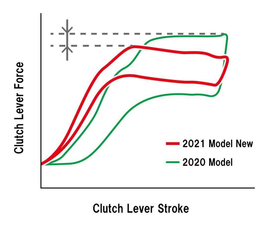 這套新的液壓式離合器、容量增加了 27%,離合片從現(xiàn)行款的七片、變成了現(xiàn)在的八片,離合器的摩擦彈簧也從現(xiàn)行款的五個、增加至六個。新的設(shè)計能夠最大限度地提高動力傳輸和耐用性,以應(yīng)對極限狀態(tài)下的苛刻使用環(huán)境。此外,操縱桿/離合牛角的杠桿控制力度比現(xiàn)行款輕了 10%,改善了車手的控制感覺。