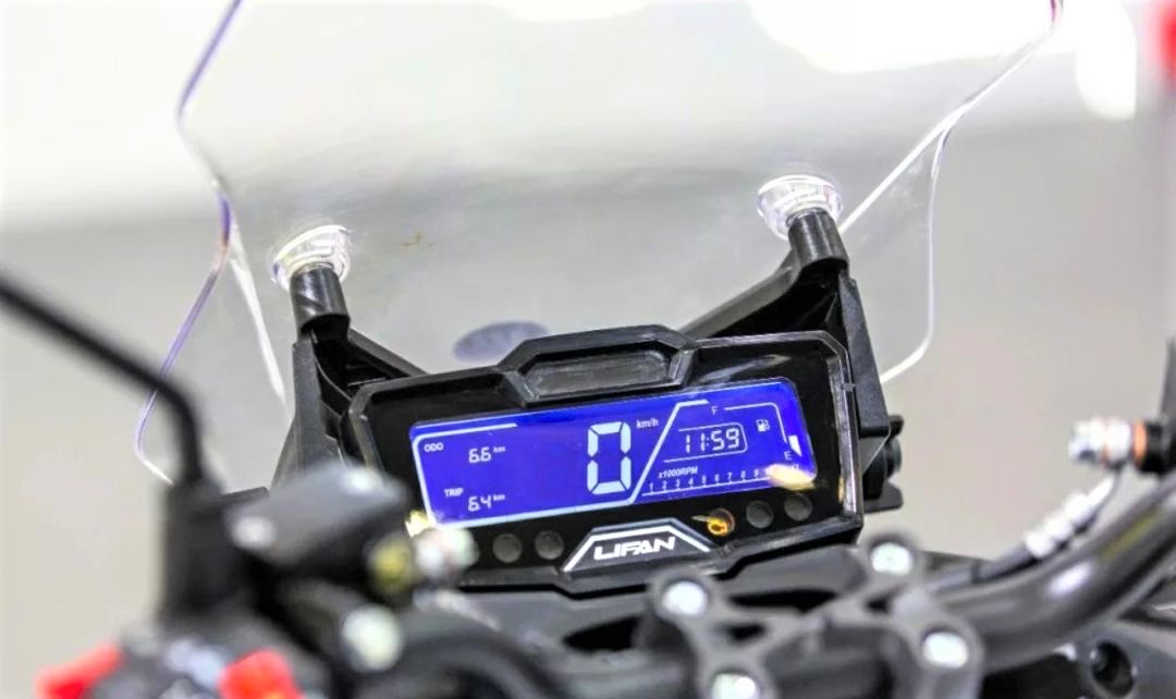 配置方面根據(jù)之前所曝出來的消息,配備了液晶儀表,USB充電接口,可調(diào)節(jié)的風(fēng)擋,以及全車LED燈源,據(jù)說還會有自動光感應(yīng)前照燈等。儀表盤的風(fēng)格有點(diǎn)本田的意思,加上面積還算不錯的風(fēng)擋,確實(shí)有一些探險(xiǎn)摩托車的韻味。