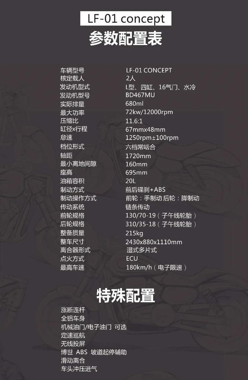 國產(chǎn)第二個擁有四缸車型的品牌,奔達推出了四缸巡航概念車LF-01 concept,這款車被很多國內(nèi)車友大肆圍觀,雖然奔達并沒有過多的宣傳,但是絲毫不影響它的人氣。而且還給出了具體的參數(shù)和配置(如下圖),由此可見奔達對于這臺車型信心滿滿,而且量產(chǎn)不會太遠。