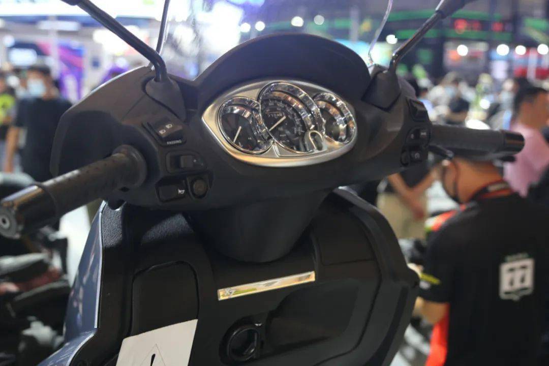 一般說(shuō)到歐式踏板子,大輪圈基本是很常見的,尤其是250mL以上,但是亮相的這款X7還是小輪圈。