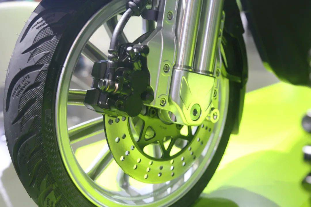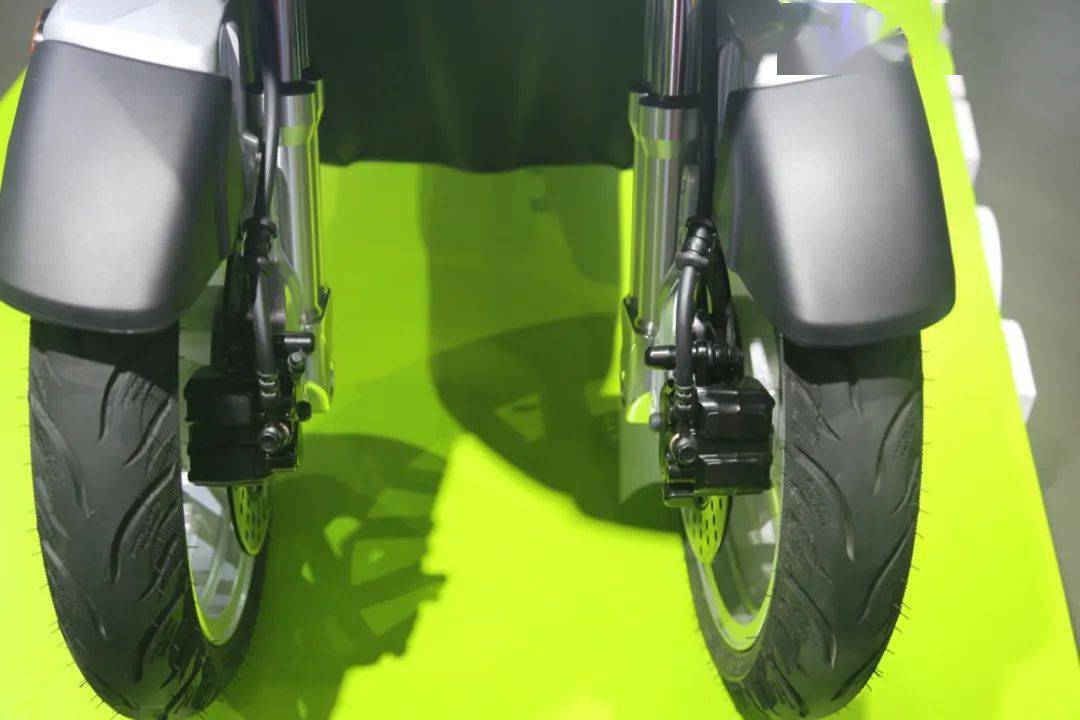 車友們關(guān)心的動(dòng)力問(wèn)題,經(jīng)我向現(xiàn)場(chǎng)工作人員的了解后得知:D1分為”小排量“——3000W輪轂電機(jī),”中排量“——3000W中置電機(jī),以及”大排量“——”5000W“中置電機(jī)。雖然未能試駕體驗(yàn),但是相信5000W中置電機(jī)也可以帶來(lái)相當(dāng)不錯(cuò)的樂(lè)趣體驗(yàn)。續(xù)航方面,D1配了4組可提取的鋰電池包,充電的便捷性有了一定提升,但電池包具體規(guī)格猶未可知,官方表示續(xù)航里程200km。制動(dòng)系統(tǒng)為前后碟剎,每個(gè)輪子都是配置對(duì)向四活塞卡鉗,且配CBS剎車聯(lián)動(dòng)功能。
