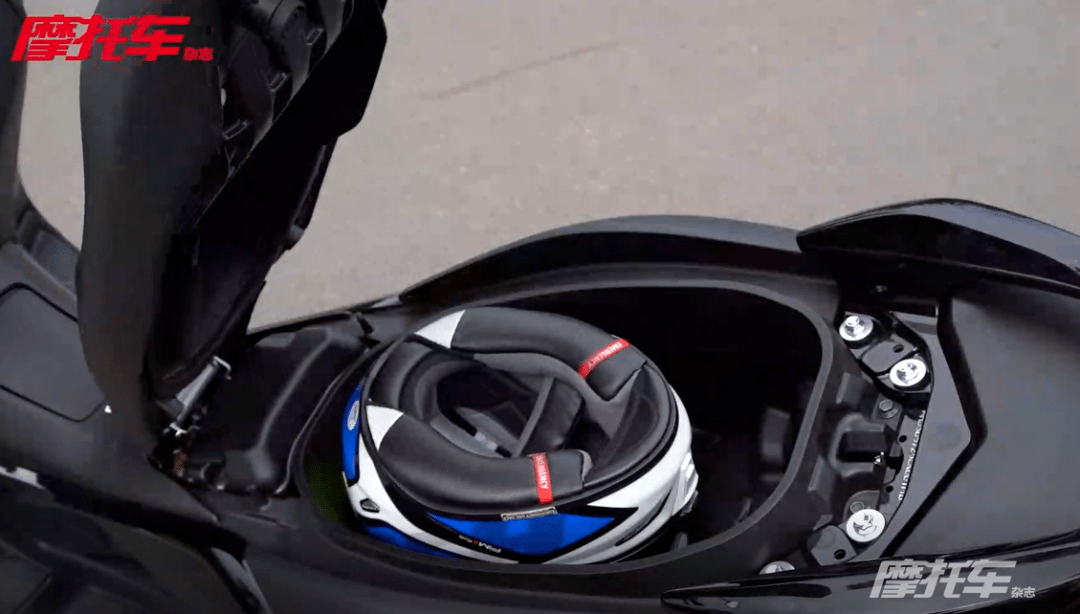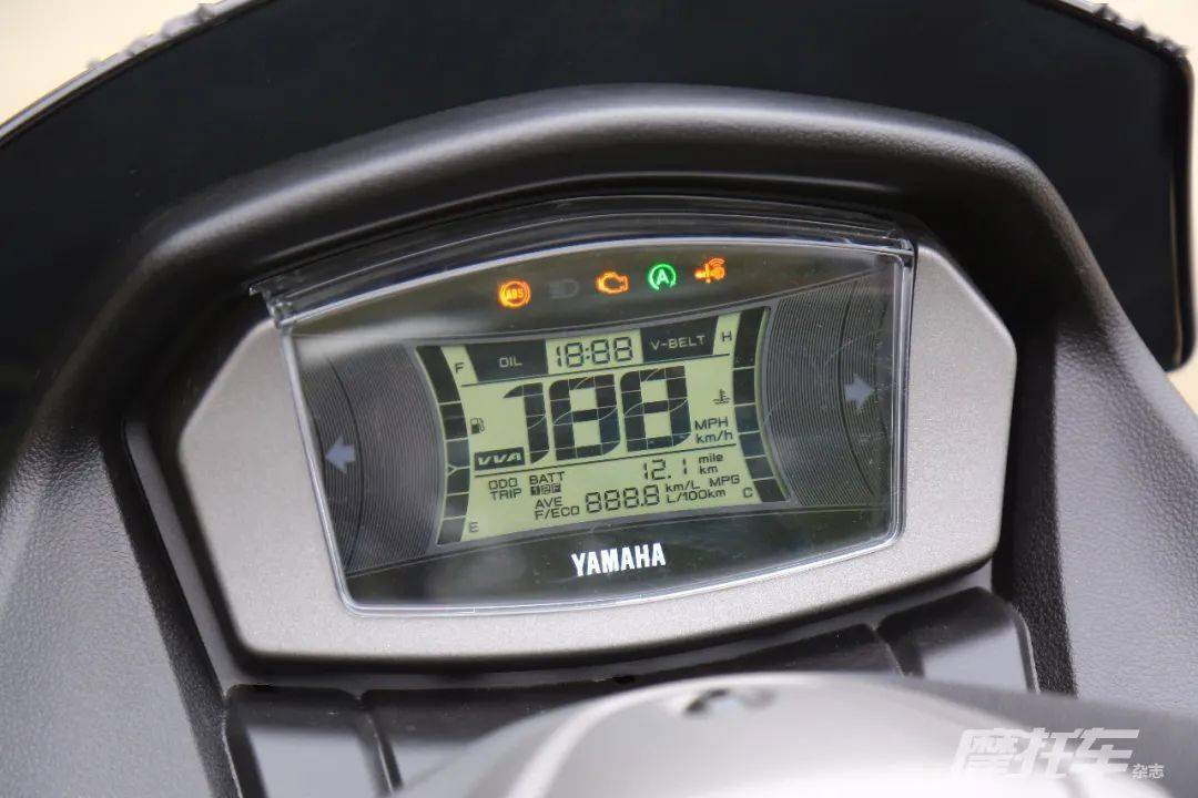 其次這款車的實用還體系在小的細(xì)節(jié)方面,比如全新的儀表有著豐富的顯示信息,瞬時油耗、平均油耗甚至換油提醒以及皮帶保養(yǎng)提醒都非常貼心。這款車還配有智能無鑰匙啟動系統(tǒng),并支持尋車功能,尋車距離接近100m,不僅增加了高級感也非常實用。最后,儲物空間更是在同級別中表現(xiàn)優(yōu)秀,車把下兩個儲物空間很實用,同時座桶空間還能放下一頂全盔確實在這個級別中不常見。不過作為全球車型,NMAX 155配備的是12V電源,并沒有直接配備USB電源,這一點使用上有些繁瑣。