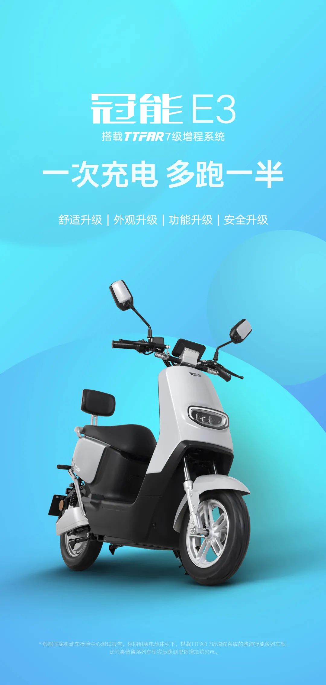 在冠能系列中,E3的外觀算是比較“中和”的類型,綜合了M8的典雅和T5的實用性,無論男女都能適配。作為雅迪冠能系列產(chǎn)品,E3同樣搭載了TTFAR 7級增程系統(tǒng),能做到一次充電多跑一半。另外此次E3針對性能和安全都有了新的升級,讓騎行更加的舒適和安全。