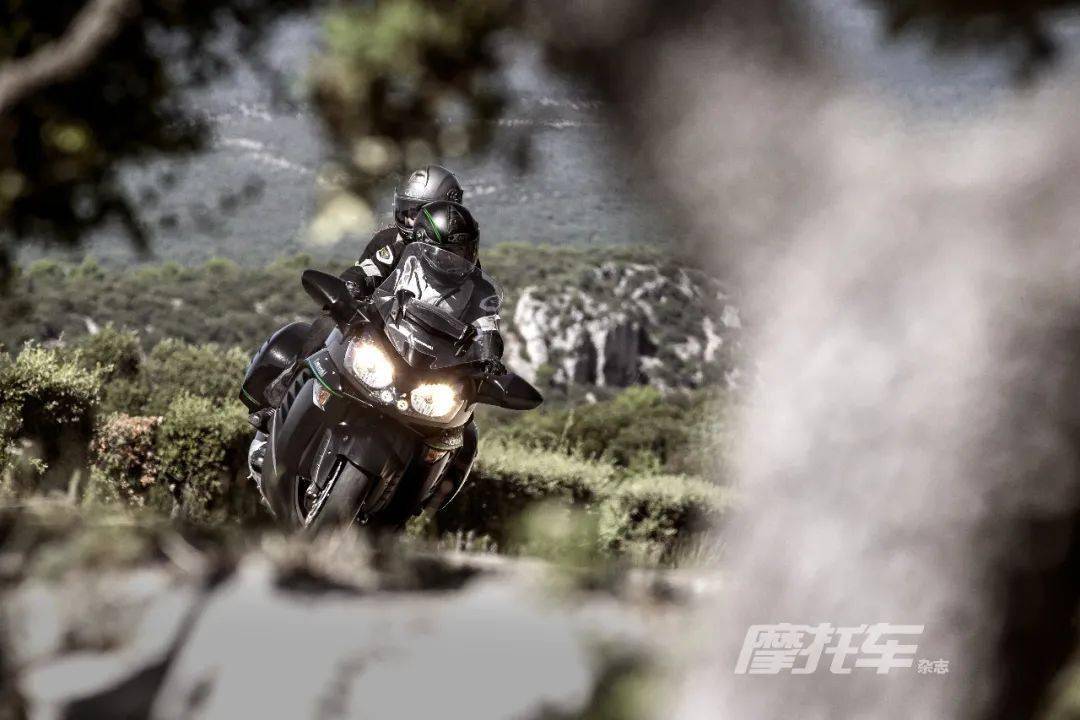 川崎運動旅行車1400 GTR引以為傲的,當(dāng)然是排量高達1352 mL的發(fā)動機,這臺來自于“超級忍者”ZX-14的動力心臟是排量最大的并列四缸,114kW(8800 r/min)最大功率和136N·m(6200 r/min)最大扭矩明顯壓過競爭對手;即使是法國版的動力輸出刻意予以限制,最大功率和扭矩仍然分別有78.2kW(8000 r/min)和121N·m(4500r/min)。