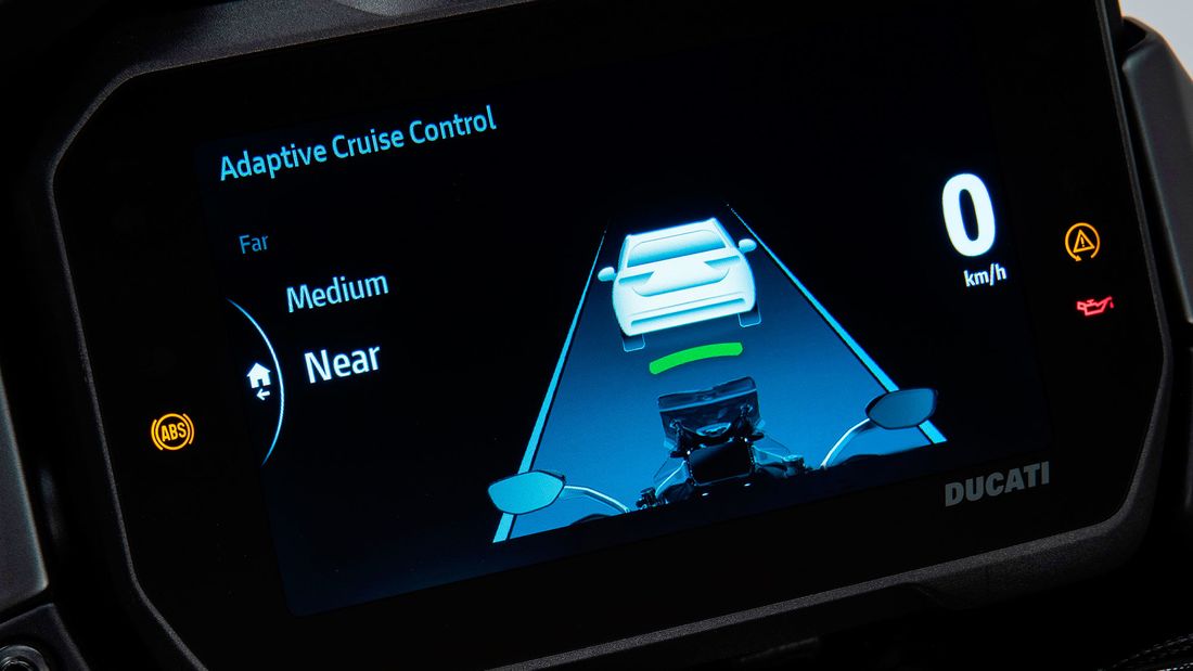 博世開(kāi)發(fā)的雷達(dá)系統(tǒng)使用安裝在摩托車(chē)前后的雷達(dá)單元進(jìn)行自適應(yīng)巡航控制和盲點(diǎn)檢測(cè),這些系統(tǒng)現(xiàn)在在汽車(chē)中很常見(jiàn),但現(xiàn)在僅適用于摩托車(chē)。每個(gè)雷達(dá)單元重約190克(0.4磅),大約像GoPro這樣的運(yùn)動(dòng)攝像機(jī)的大小。前部雷達(dá)單元(位于Multistrada V4的大燈下方)會(huì)掃描交通情況,并自動(dòng)調(diào)整制動(dòng)和加速,以在30km/h至160km/h的速度行駛時(shí)保持預(yù)設(shè)的分隔距離。調(diào)整將受到控制且不會(huì)突然發(fā)生,從而使騎手能夠根據(jù)需要保持控制。