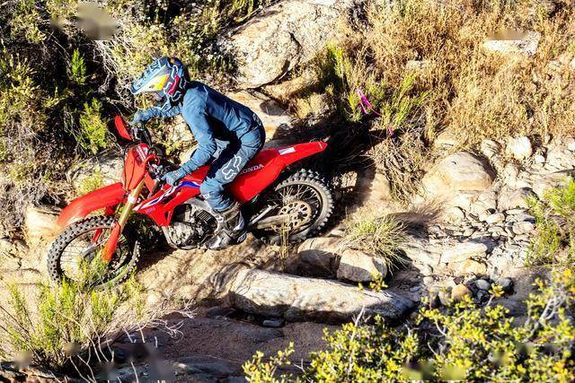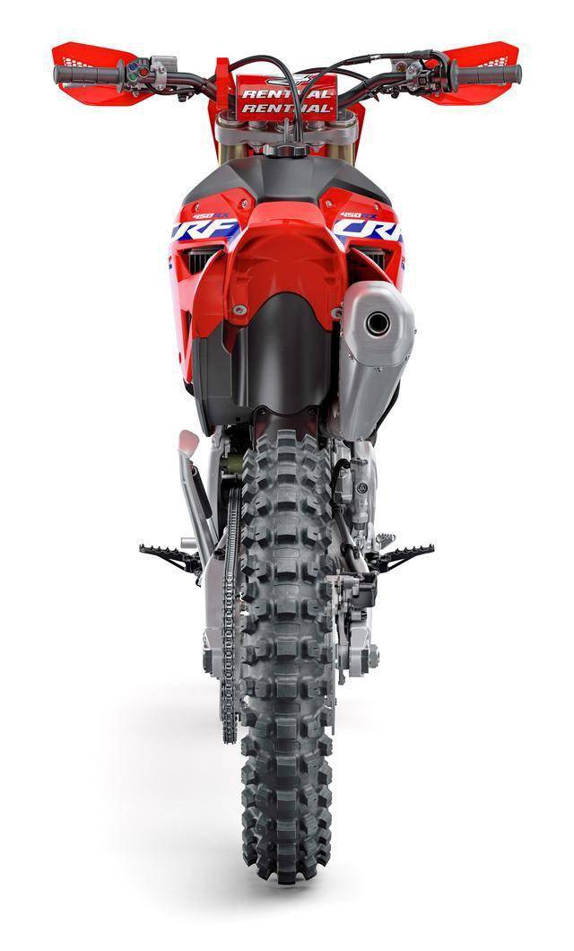 與 CRF450R 相比,RX 版的發(fā)動(dòng)機(jī)動(dòng)力輸出特性經(jīng)過(guò)了調(diào)整,ECU 內(nèi)的數(shù)據(jù)包也有對(duì)應(yīng)的設(shè)置,而懸掛系統(tǒng)的設(shè)置也降低了、以適應(yīng)更廣泛條件之下的應(yīng)用,并有助于在長(zhǎng)時(shí)間駕駛時(shí)、車(chē)手有更好的舒適性。前 21、后 18 英寸直徑(R 版采用前 21、后 19 英寸)的 DID 鋁制鋼線式輪框,換裝了對(duì)應(yīng) Enduro 環(huán)境的配套輪胎。油箱容量略為增大至 8 公升(R 版的容量為 6.3 公升)。此外,并加裝了 R 版所沒(méi)有的車(chē)把兩側(cè)護(hù)手、鍛造鋁制的側(cè)腳架。