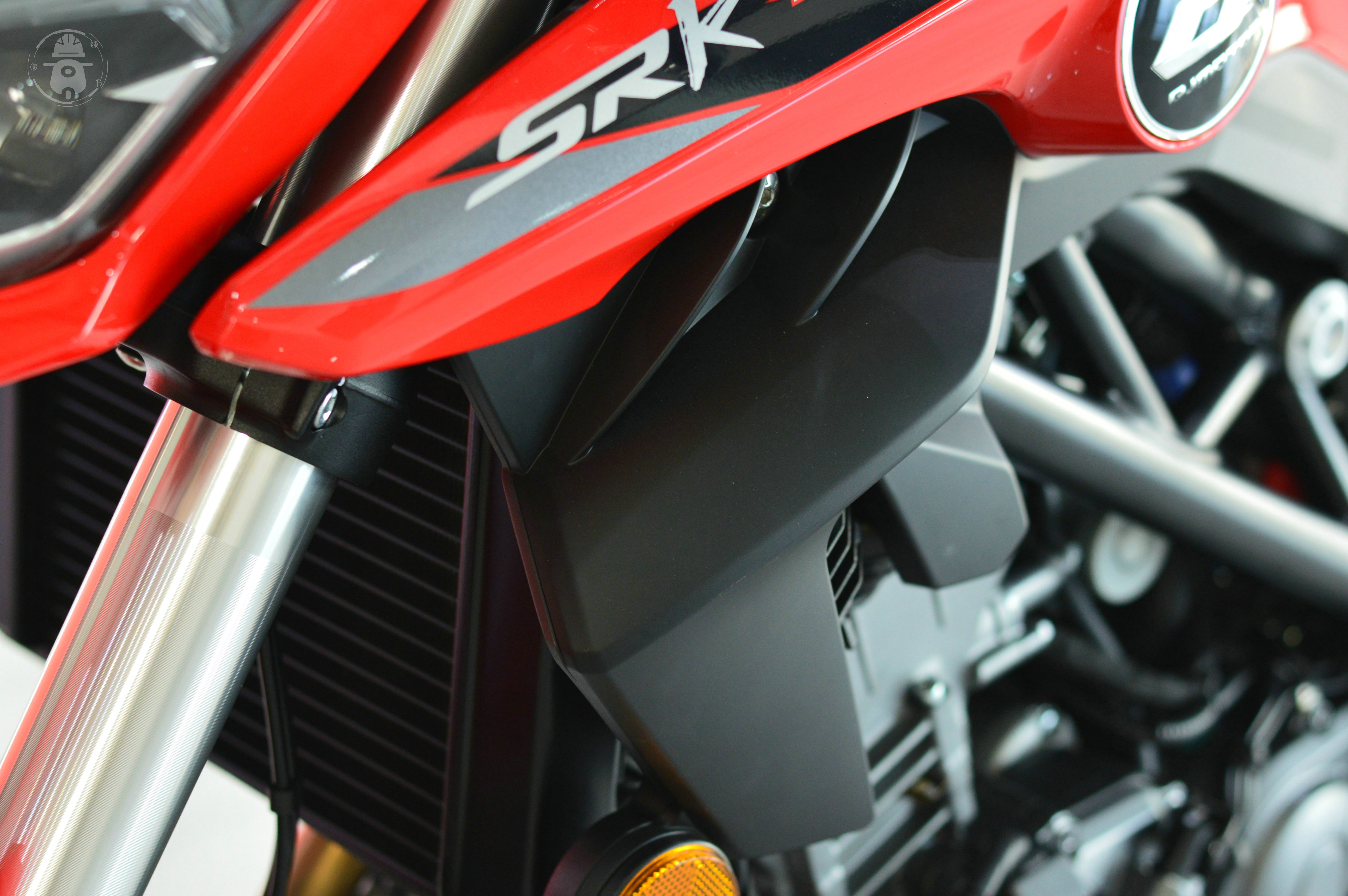 水箱護(hù)罩很有設(shè)計(jì)感,有些類似“定風(fēng)翼”的設(shè)計(jì),這在國產(chǎn)摩托車上非常少見,雖然并沒有什么實(shí)質(zhì)性的效果,但是對(duì)運(yùn)動(dòng)感和觀感的提升很有幫助。