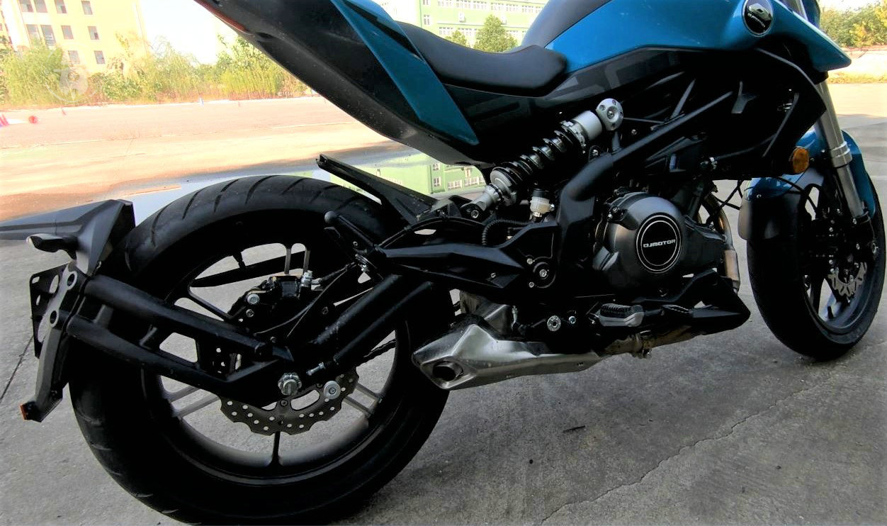 追350的外觀設(shè)計(jì)并沒有什么大的槽點(diǎn),除了比較凌亂的走線之外,做工方面有明顯進(jìn)步。該車采用的依然是龍三那套車架,但是沒有“意大利式”的裸露風(fēng)格,而且車架、輪圈、后搖臂,都經(jīng)過了輕量化的處理。