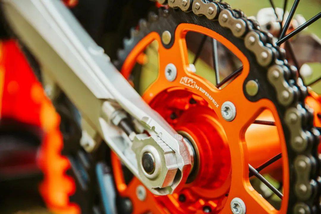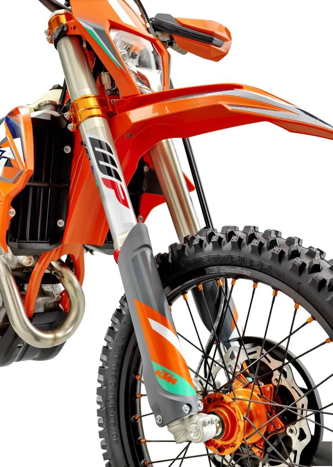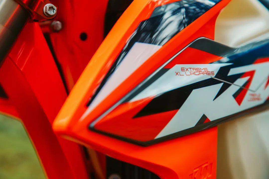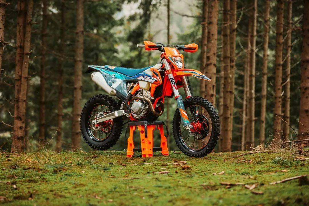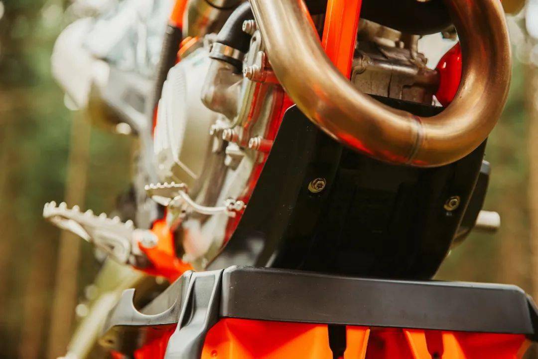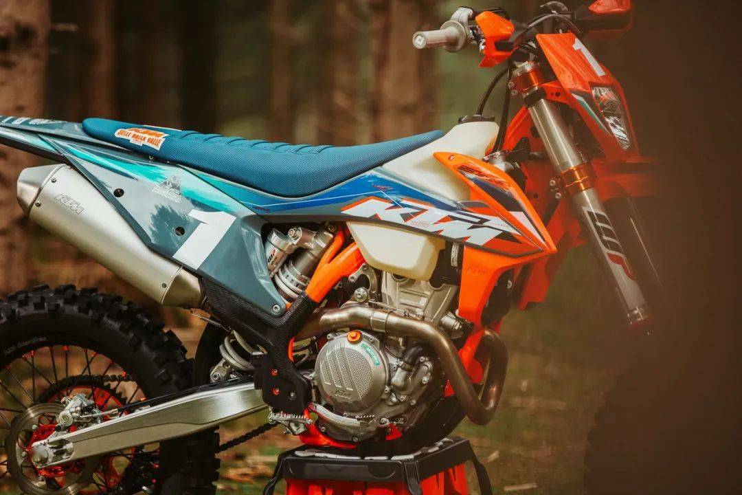 WESS 版的 350 EXC-F 是向去年的年度總冠軍致敬的產(chǎn)物,前叉換裝了 WP 最新的、專為越野比賽設(shè)計(jì)的 TACT 倒立式前叉(標(biāo)準(zhǔn)版 350 EXC-F 使用 WP XPLOR 倒立式前叉),與冠軍的工廠賽車同款的前后輪框、防滑鞍座、外觀圖案,橙色的車架(標(biāo)準(zhǔn)款是黑色的車架),CNC 加工而成的上下三星(前叉三角臺(tái)),Supersprox 的賽車齒輪(后傳動(dòng)齒輪),加裝了前剎車碟護(hù)罩、散熱器護(hù)罩、發(fā)動(dòng)機(jī)底部護(hù)罩等。