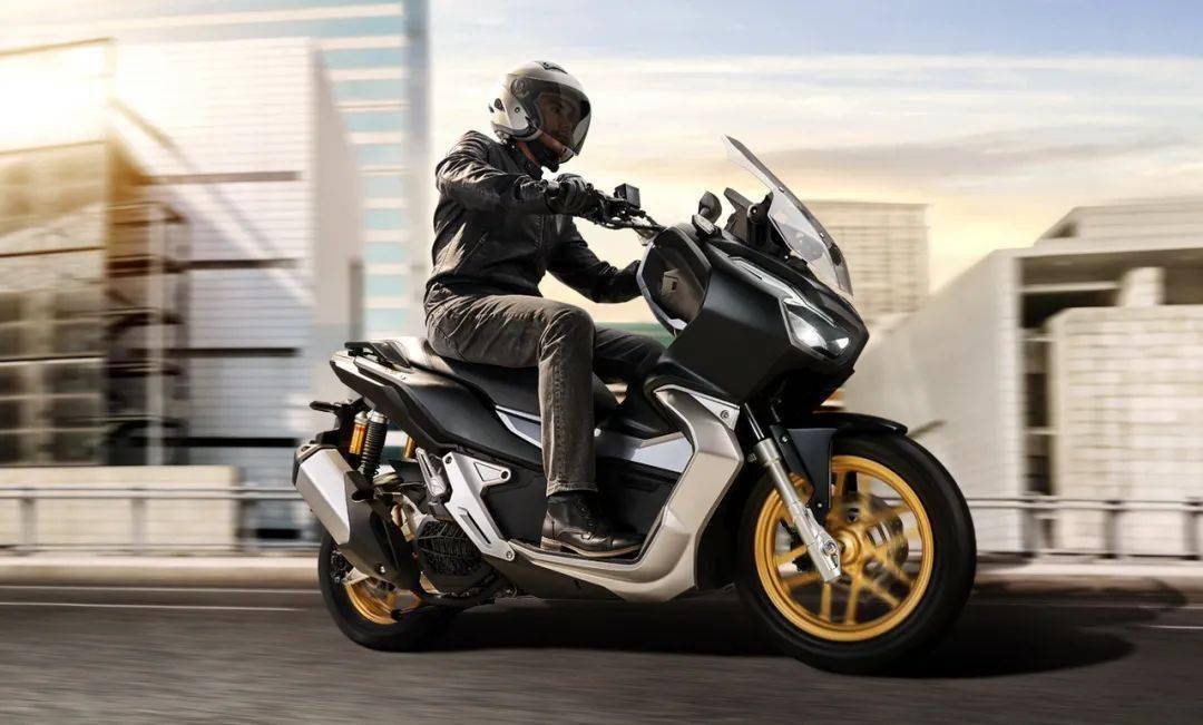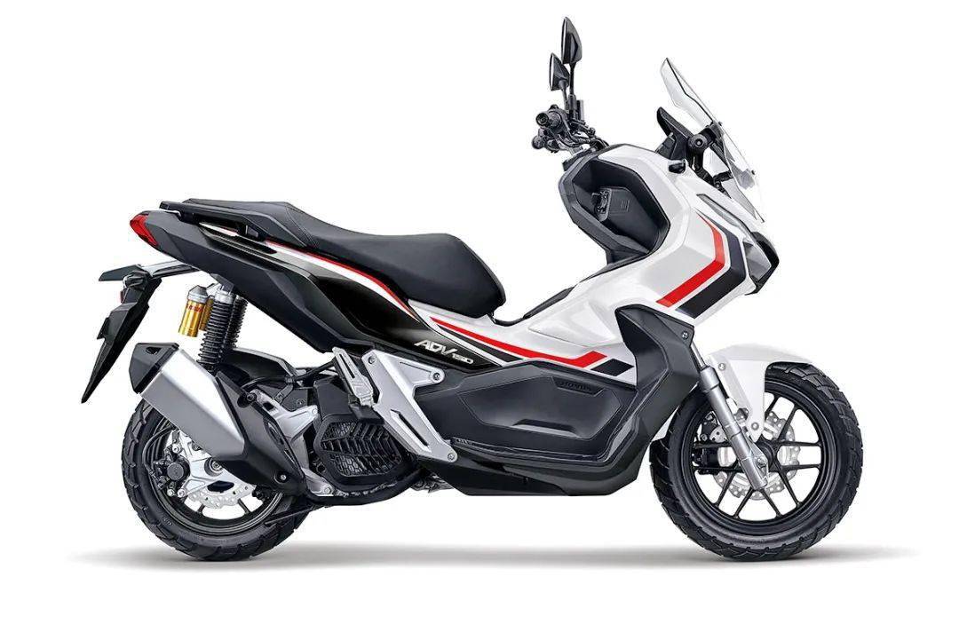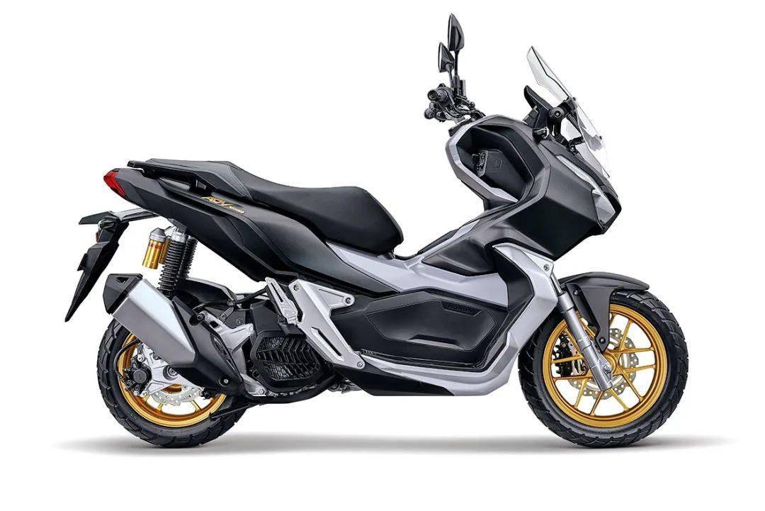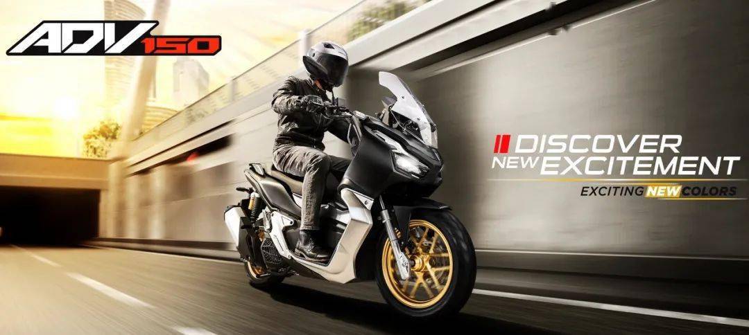 新的 2021 款 ADV150 是在現(xiàn)有圖案的基礎(chǔ)上,新增了兩個(gè)啞光色圖案(啞光黑色、啞光白色),并換裝了金色的前后輪框(現(xiàn)行款采用黑色的前后輪框)。