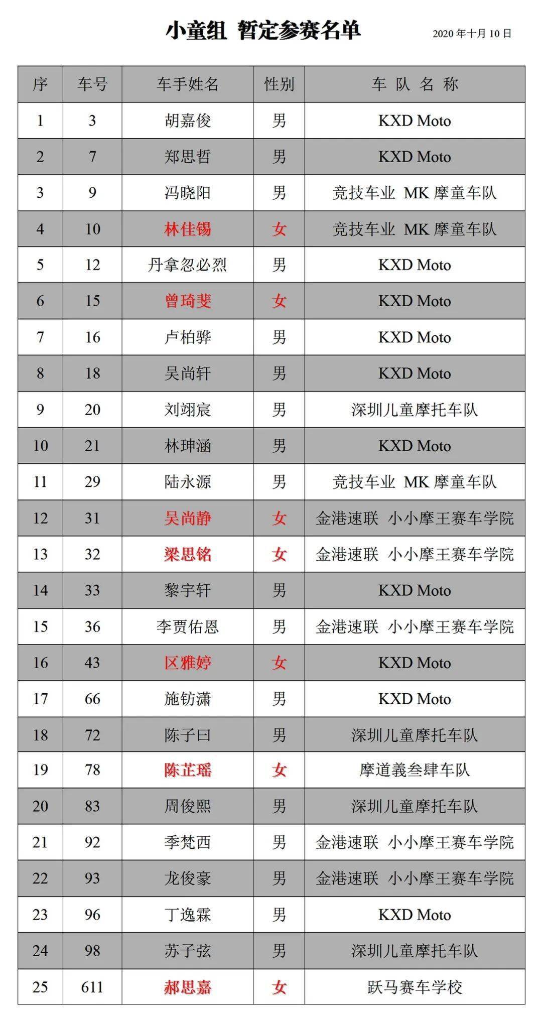 下面的圖片,2020' 三水偉業(yè)達(dá)杯第三回合、小童組的初步參賽名單。