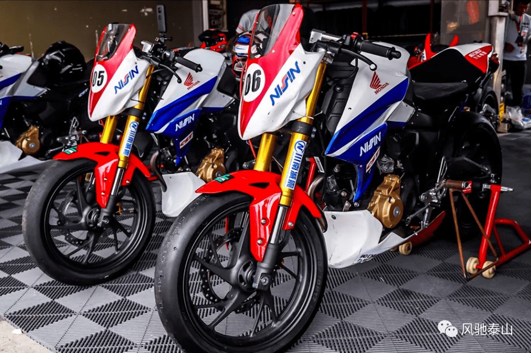 今年Honda二小時(shí)耐力賽最大亮點(diǎn)無疑是所使用的190賽車也迎來了一次換血升級(jí),全新定制的全套賽包配合光頭熱熔胎,讓原本就運(yùn)動(dòng)風(fēng)格十足的CBF190R徹底脫胎換骨成為一輛賽道小野獸。