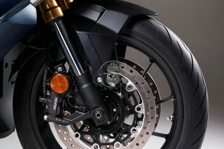 底盤方面,前17英寸后15英寸的車輪規(guī)格,昭和SFF-BP 41倒立式前叉,310mm雙剎車盤+Nissin徑向安裝四活塞卡鉗,Pro-link預(yù)緊力可調(diào)的單避震,320mm后單制動盤,Nissin雙活塞卡鉗。