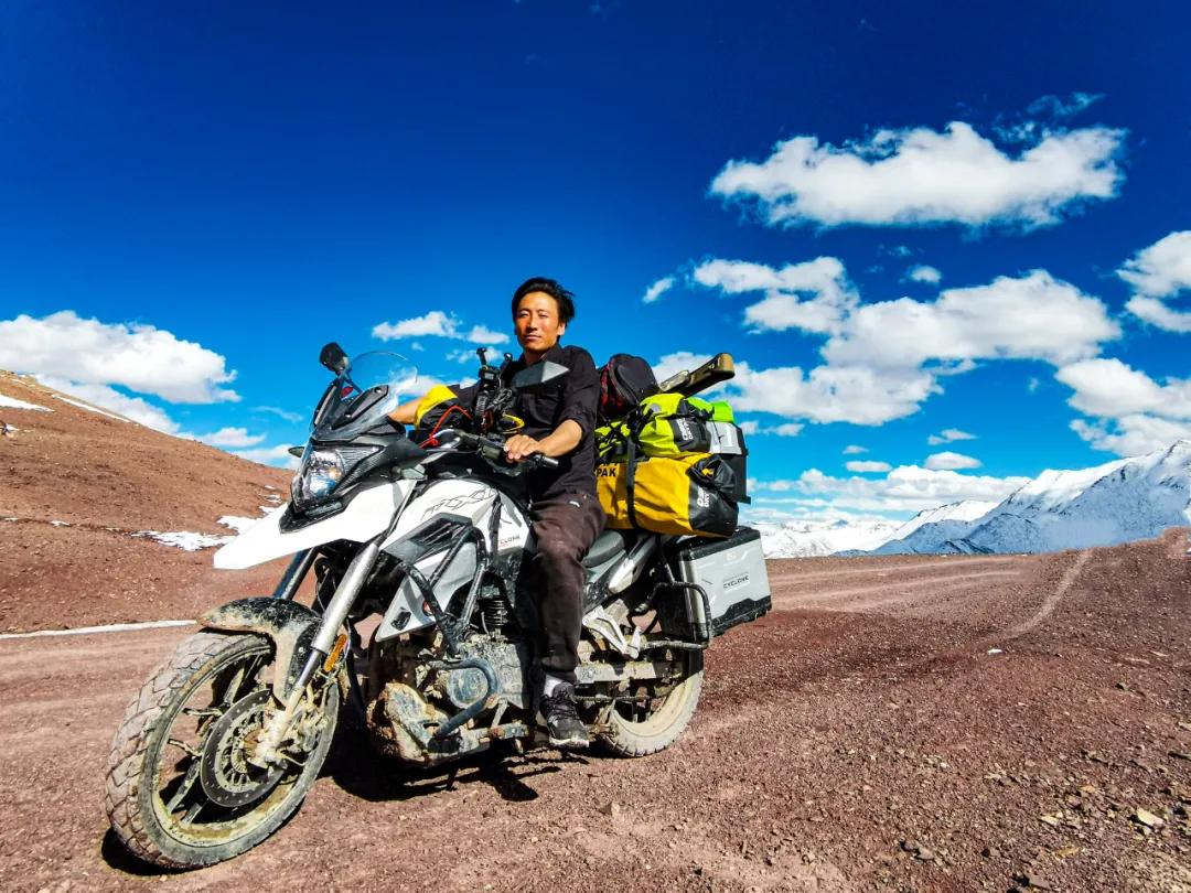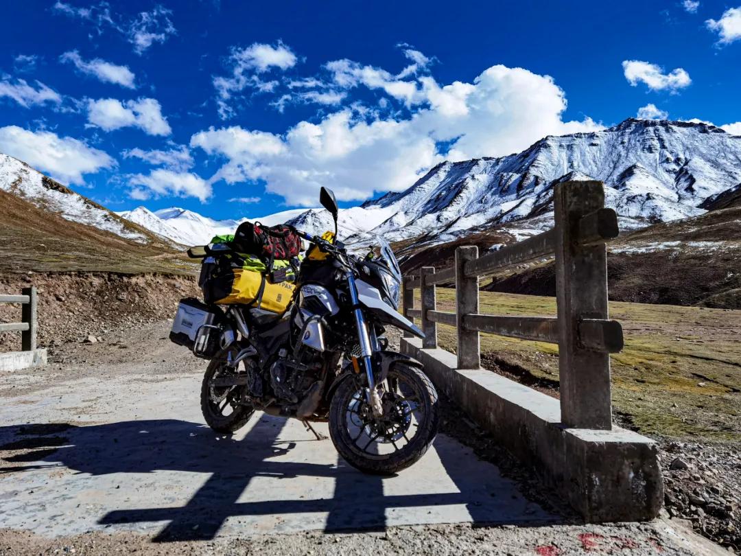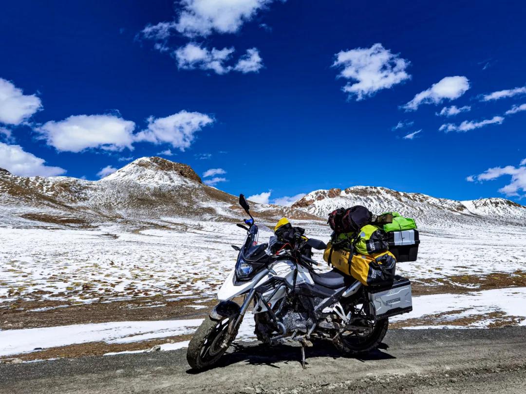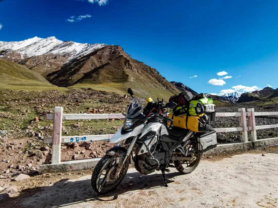 這是最后一個(gè)埡口,就要下山了。左手指突然鉆心的跳著疼,發(fā)粘,褪下手套細(xì)看,是中指的指尖肚出血了?;叵雱倓傔^去的經(jīng)歷,除了期間的停車,其余時(shí)間都是在緊握離合器拉筋。不知反復(fù)拉動(dòng)了多少次,由于拉動(dòng)過多過頻,褪下用力過多,把最吃力的中指肚撐破了,出現(xiàn)了一個(gè)七八毫米的裂口,血液凝固,指尖與手套粘連在了一起。這是我旅行探險(xiǎn)二十來(lái)年中,第一次出現(xiàn)手指肚被撐破的情況,艱難程度可見一斑。
