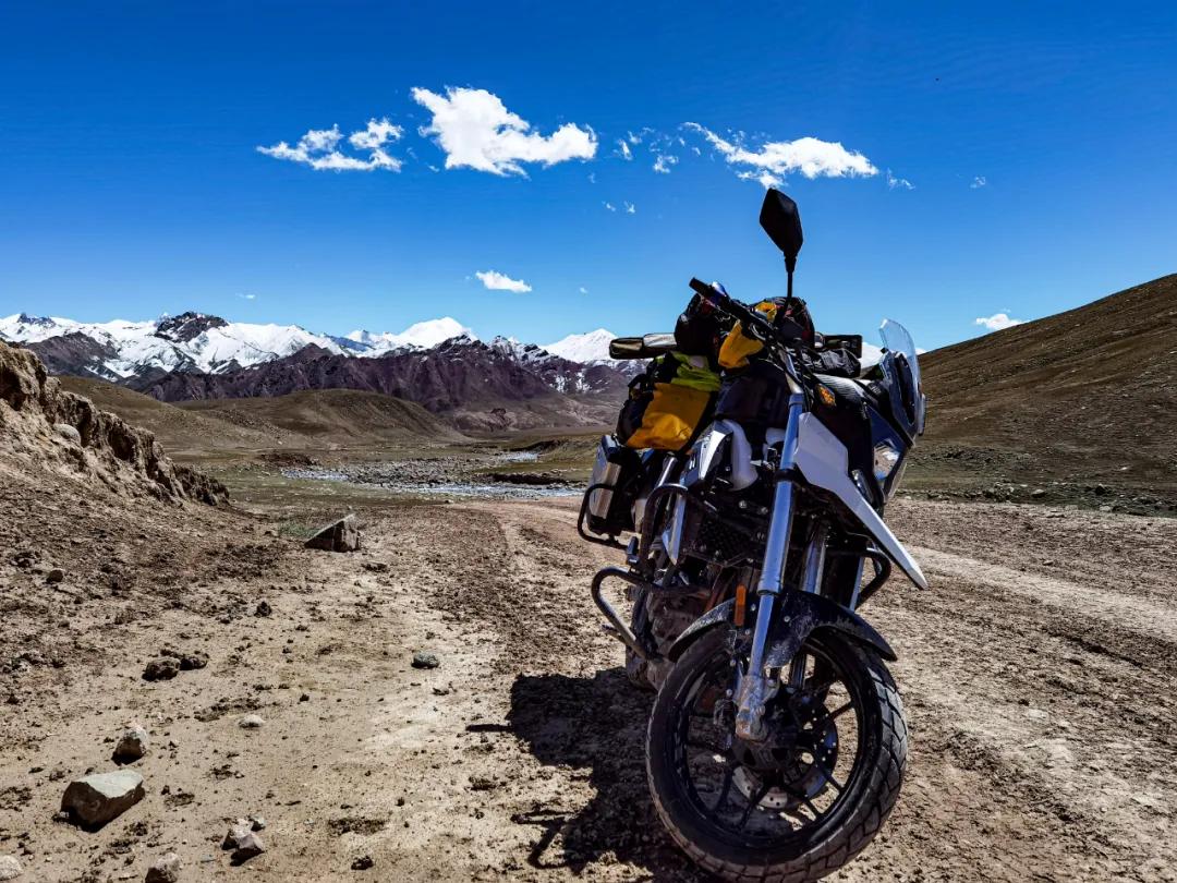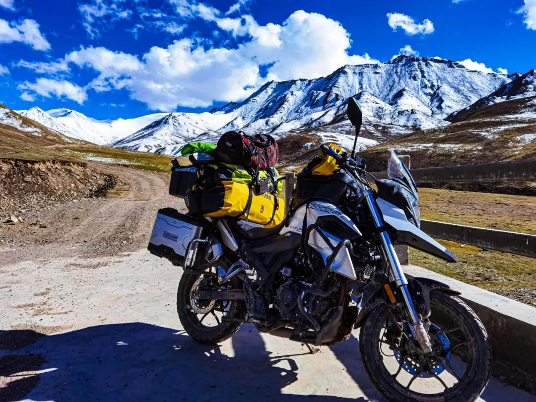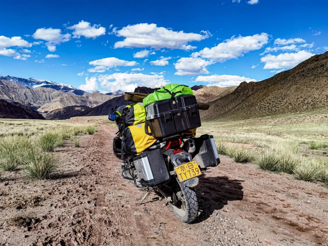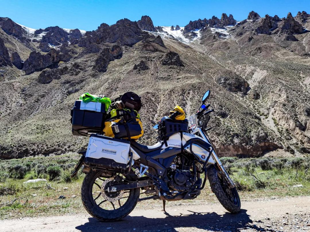 這是最后一個(gè)埡口,就要下山了。左手指突然鉆心的跳著疼,發(fā)粘,褪下手套細(xì)看,是中指的指尖肚出血了?;叵雱倓傔^去的經(jīng)歷,除了期間的停車,其余時(shí)間都是在緊握離合器拉筋。不知反復(fù)拉動(dòng)了多少次,由于拉動(dòng)過多過頻,褪下用力過多,把最吃力的中指肚撐破了,出現(xiàn)了一個(gè)七八毫米的裂口,血液凝固,指尖與手套粘連在了一起。這是我旅行探險(xiǎn)二十來(lái)年中,第一次出現(xiàn)手指肚被撐破的情況,艱難程度可見一斑。