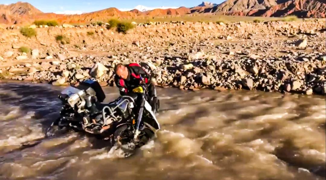 還沒真的輕松起來(lái)呢,更大的危機(jī)已經(jīng)等在路上。過保護(hù)站小橋沖毀,走進(jìn)河道水流很急,看不清水底情況只能猛沖,前輪跳頭后輪被阻,底盤被石頭拖住,瞬間失力,車子即刻向左傾覆!顧不得什么了,急忙來(lái)回淌水缷行李包,小腿以下全濕透了,水有點(diǎn)涼。拼力才扶起車子,卻推不動(dòng),也不能換擋,難道變速桿壞了??jī)x表盤進(jìn)水——黑屏,顯示失靈!麻煩了,儀表盤是否關(guān)聯(lián)了啟動(dòng)功能?!試一下?有點(diǎn)不敢啟動(dòng)按鈕,很怕它沒反應(yīng)。