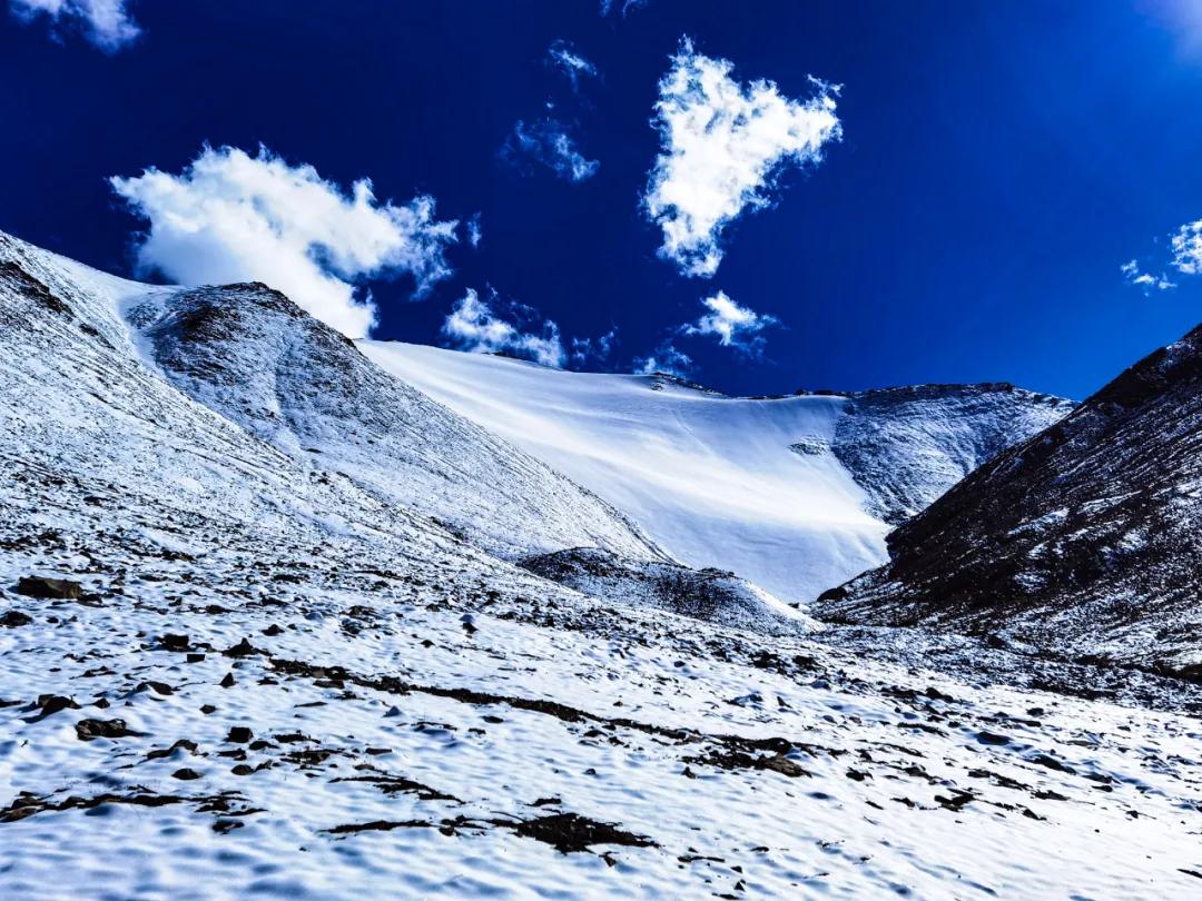 回首,再好好看一眼,再仔細(xì)看一眼,想記住雪峰的每一個(gè)棱角,每一處褶皺,每一片潔白,還有它頭頂上那片片云朵。近在咫尺的雪峰就是太美了!能看到如此美景,剛剛所經(jīng)歷的苦難瞬間都煙消云散了。所有的付出都是值得的,哪怕掏盡了我的能量,帶走我的靈魂,也心甘情愿換得看它一眼!