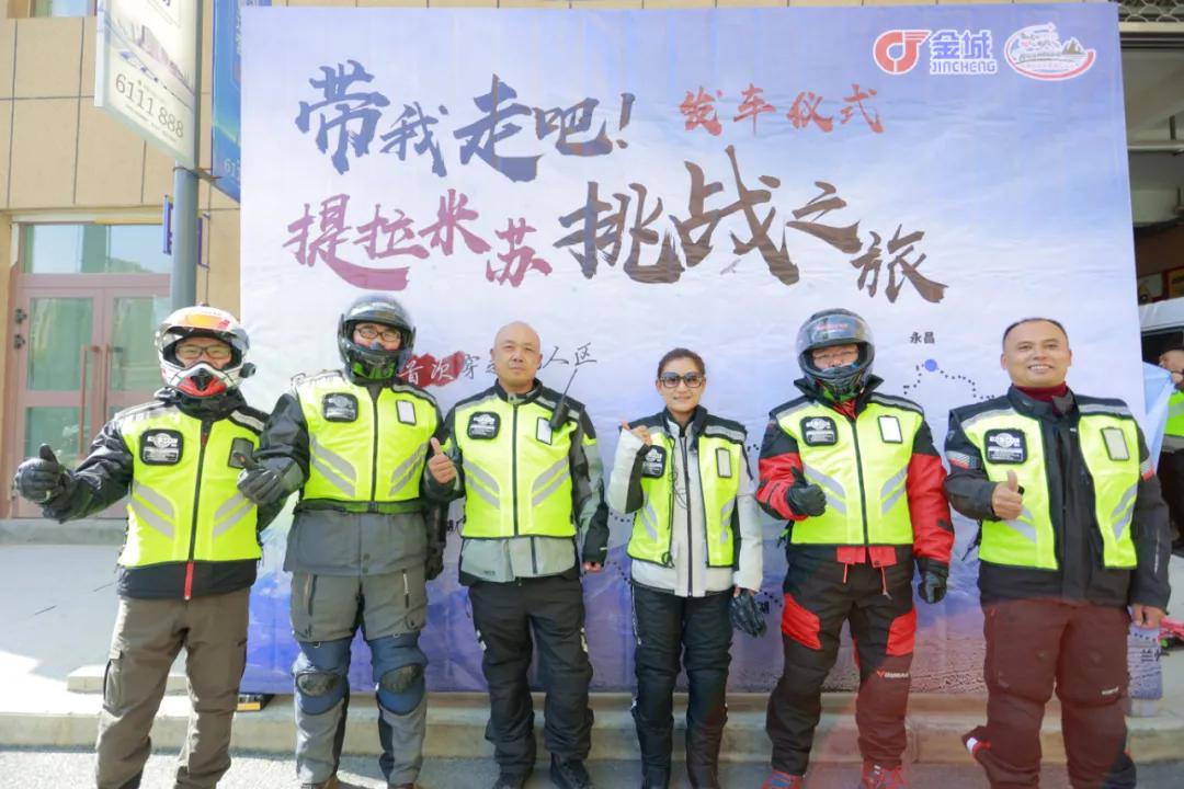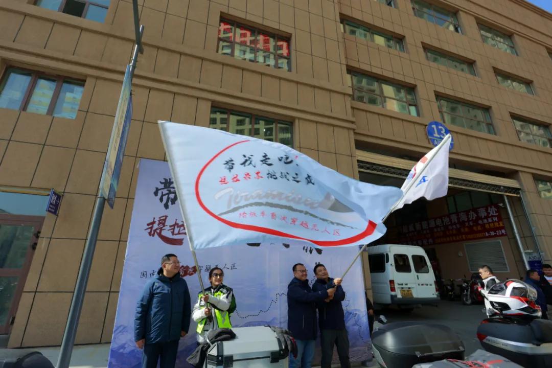 馬維國部長向本次活動(dòng)領(lǐng)隊(duì)陳建國先生、車隊(duì)領(lǐng)騎金童小姐姐胡娃麗女士分別授予金城摩托廠旗、活動(dòng)隊(duì)旗。