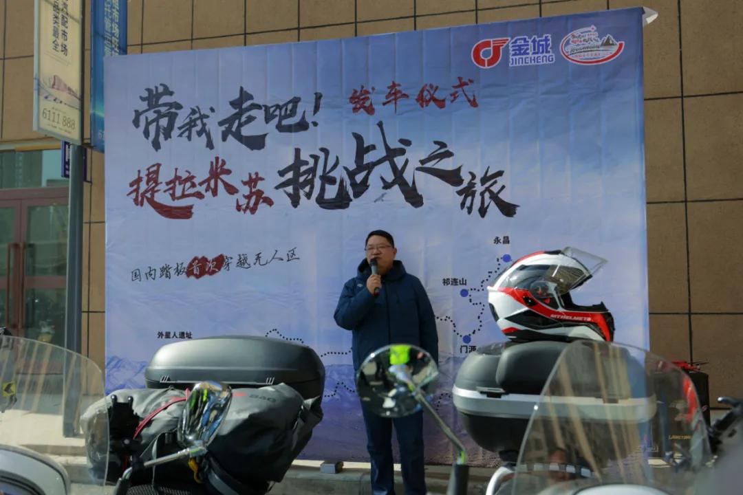 上午10點(diǎn)半,發(fā)車儀式在西寧友青摩托車商行門口啟動(dòng)。金城摩托營銷部長馬維國先生首先致辭。他對(duì)遠(yuǎn)道而來的各位提拉米蘇車友表示感謝,并強(qiáng)調(diào)這是踏板首次跨越無人區(qū)、穿越祁連山活動(dòng),金城摩托開行業(yè)先例,5天2000公里的復(fù)雜路況,將包括雪山、高原、砂石路、高速公路等,但提拉米蘇就是這樣一款能夠勝任高度復(fù)雜路況的大動(dòng)力、大輪轂水冷踏板, 一路騎來,你將發(fā)現(xiàn)它的超強(qiáng)摩旅性能,必能勝任此次摩旅活動(dòng)的挑戰(zhàn)!最后,馬部長希望大家能夠遵守騎行紀(jì)律,順利完成這次挑戰(zhàn)之旅。