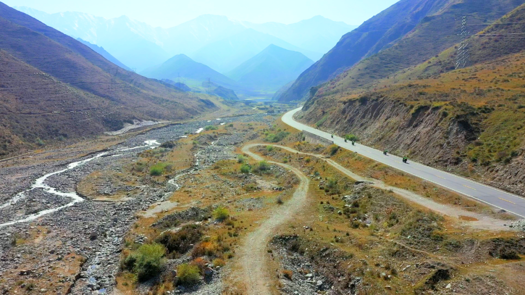 遠(yuǎn)處的山就是祁連山的山脈,提拉米蘇疾馳而過,有沒有挑戰(zhàn)之旅的既視感?