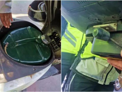 金城提拉米蘇可選配附屬油箱,容積為7升,有一位車友改加裝了油泵,開啟油泵電機(jī),就可以直接把副油箱里的油直接抽到車子的油箱里(當(dāng)然你可以用標(biāo)配的可伸縮軟管插入加油口,然后直接倒),真是太有創(chuàng)意了。