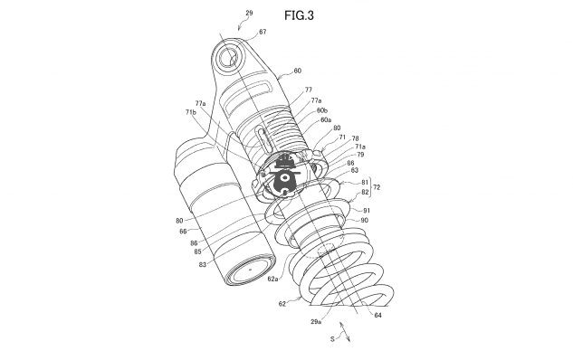 懸架專利概述了一種防震設(shè)計(jì),該設(shè)計(jì)可防止預(yù)緊調(diào)節(jié)器撥盤因彈簧的旋轉(zhuǎn)力而意外轉(zhuǎn)動。值得注意的是,減震設(shè)計(jì)具有背負(fù)式儲油器,目前的Rebel車型并未使用。